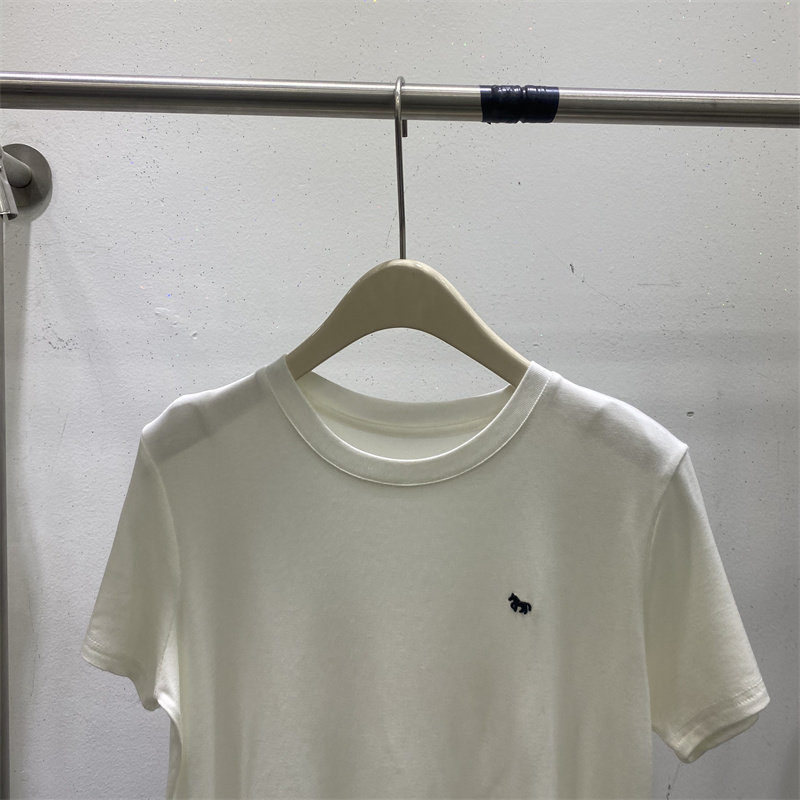 韩版2026春款小羊刺绣短袖T恤女2026新款圆领纯色显瘦百搭上衣