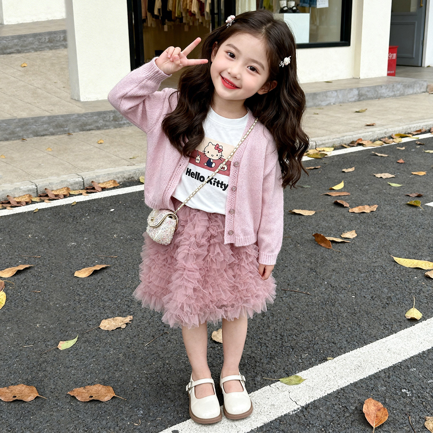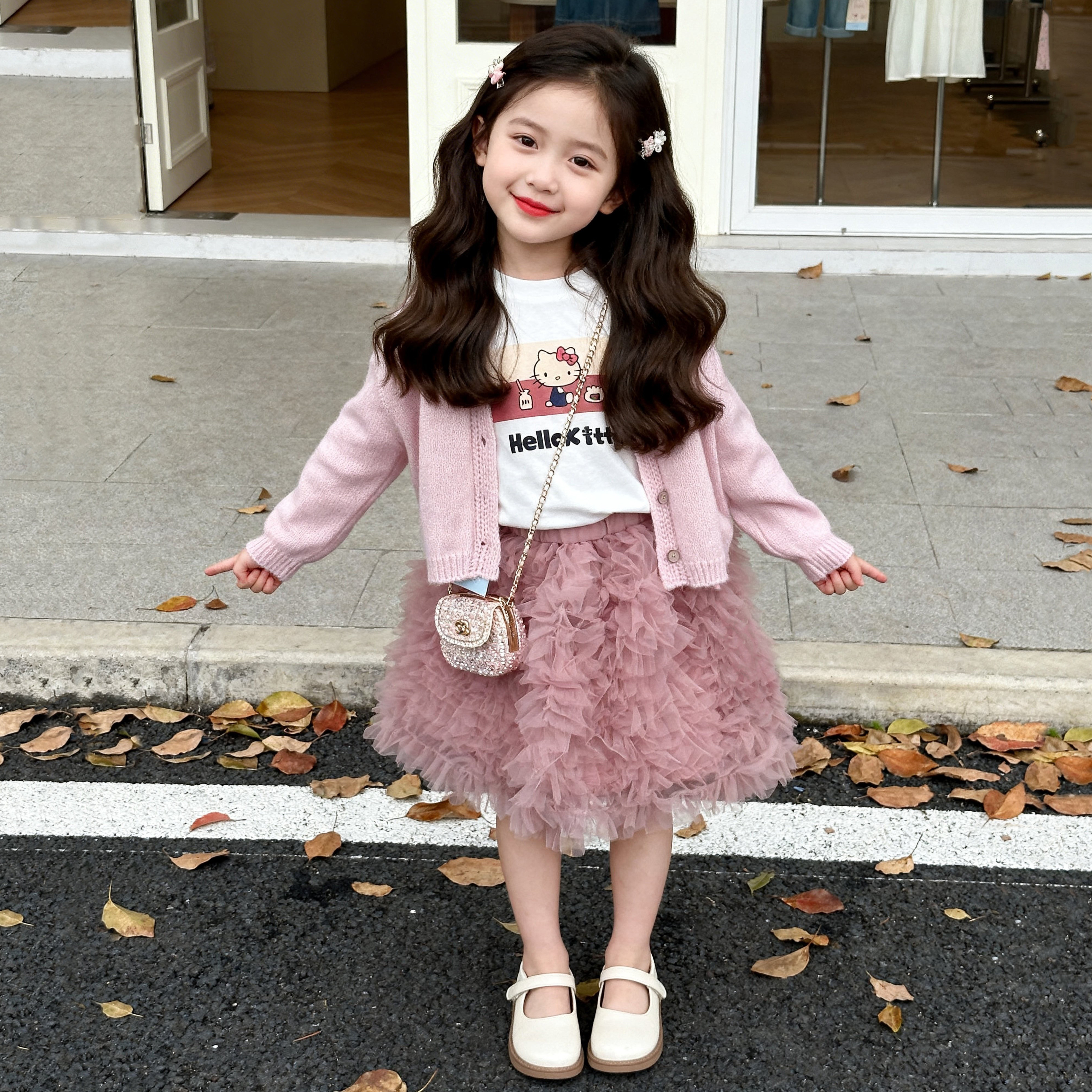 女童春秋款半身裙套装2026新款洋气时髦儿童女宝宝春季春装凸凸裙