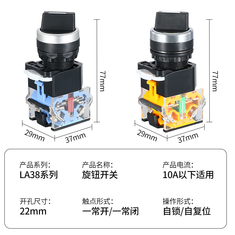 选择开关按钮LA38-11X2转换20X3旋钮2 3档22MM二挡三档旋转自复位
