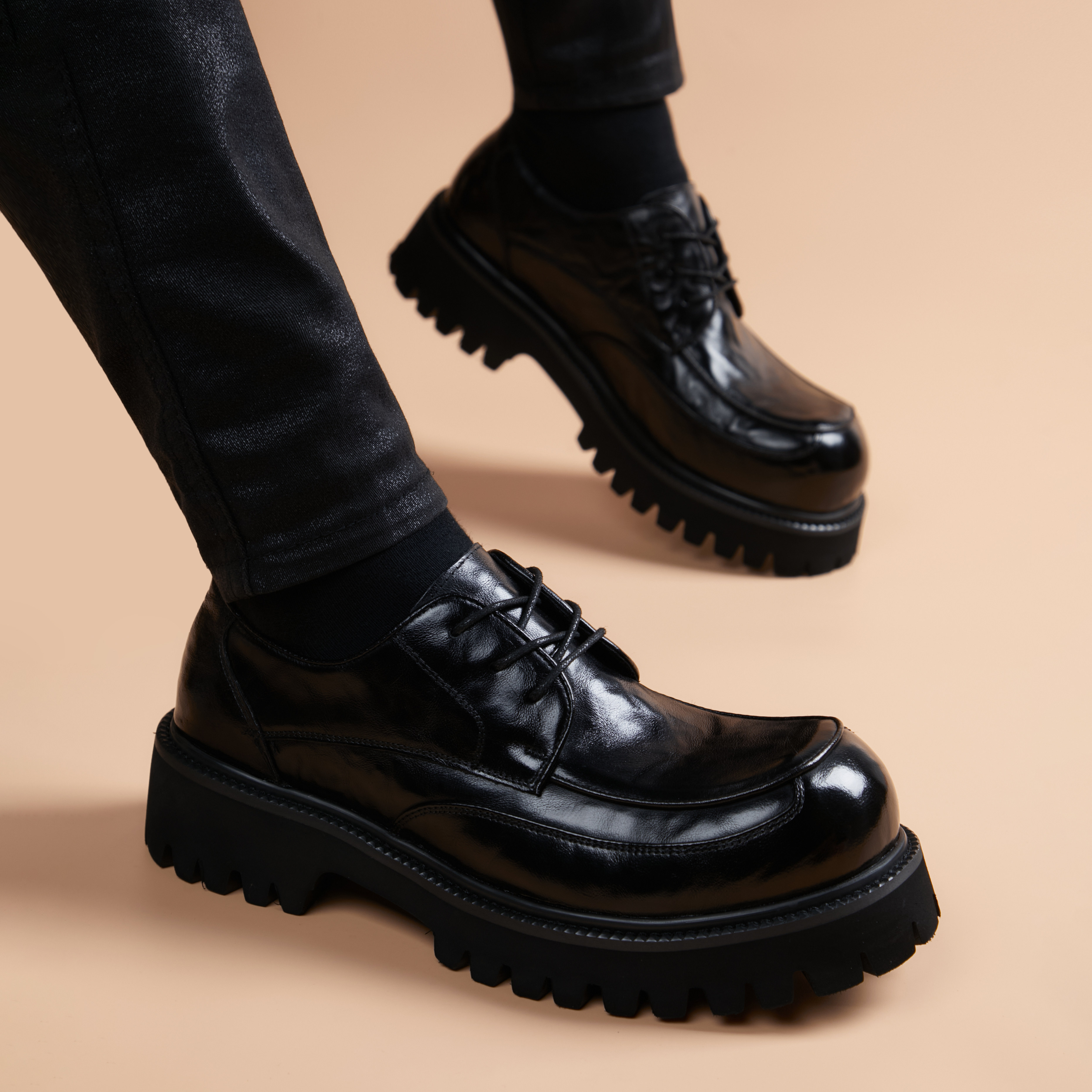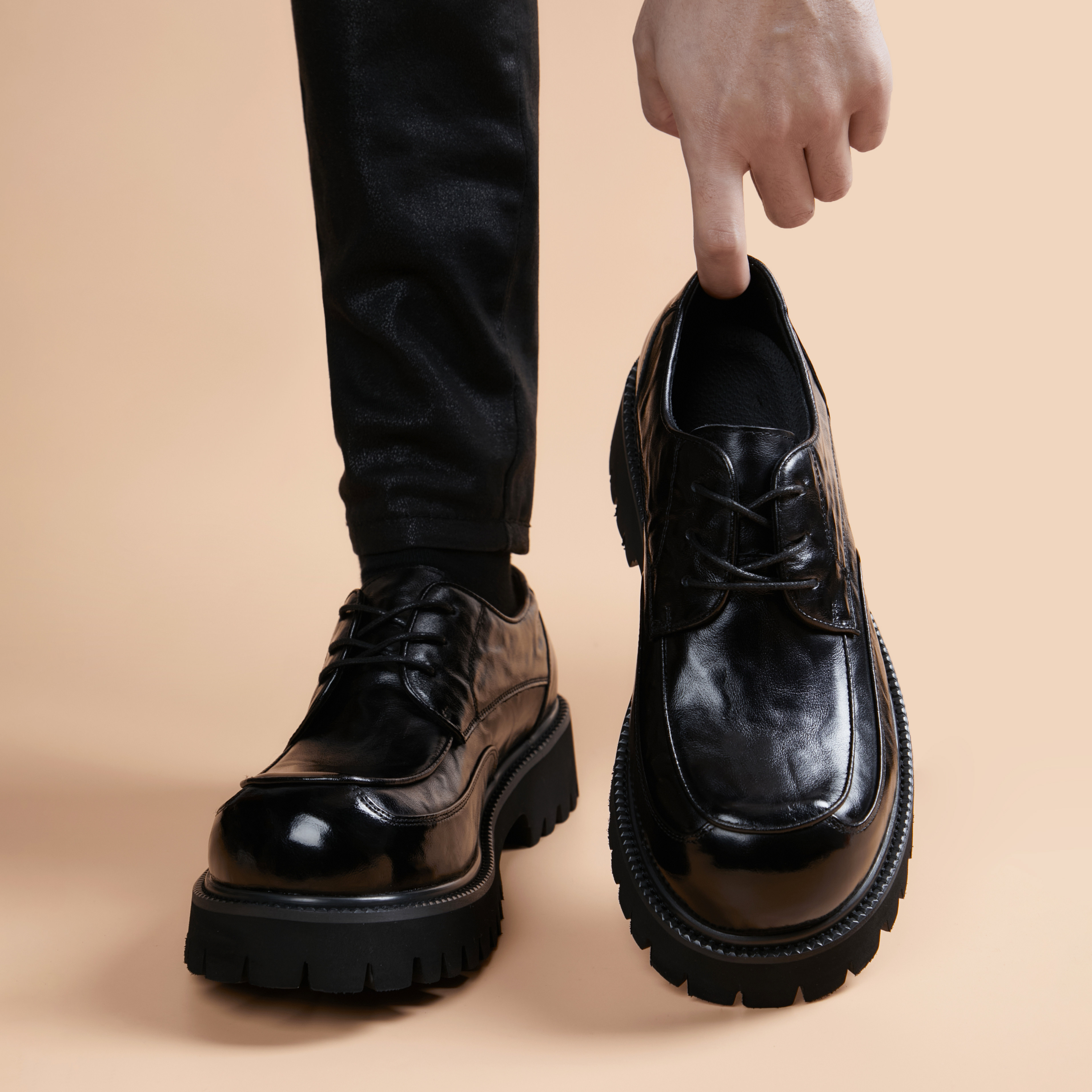 大头德比鞋男款2026英伦新款潮休闲鞋子厚底真皮增高商务休闲皮鞋