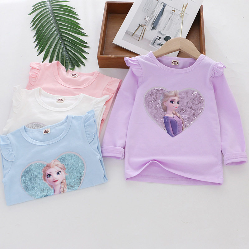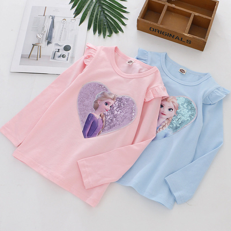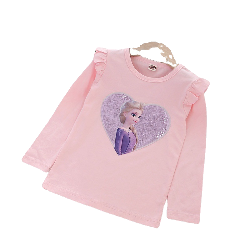 女童长袖纯棉T恤春秋款宝宝圆领卡通爱莎公主亮片打底衫6外穿上衣