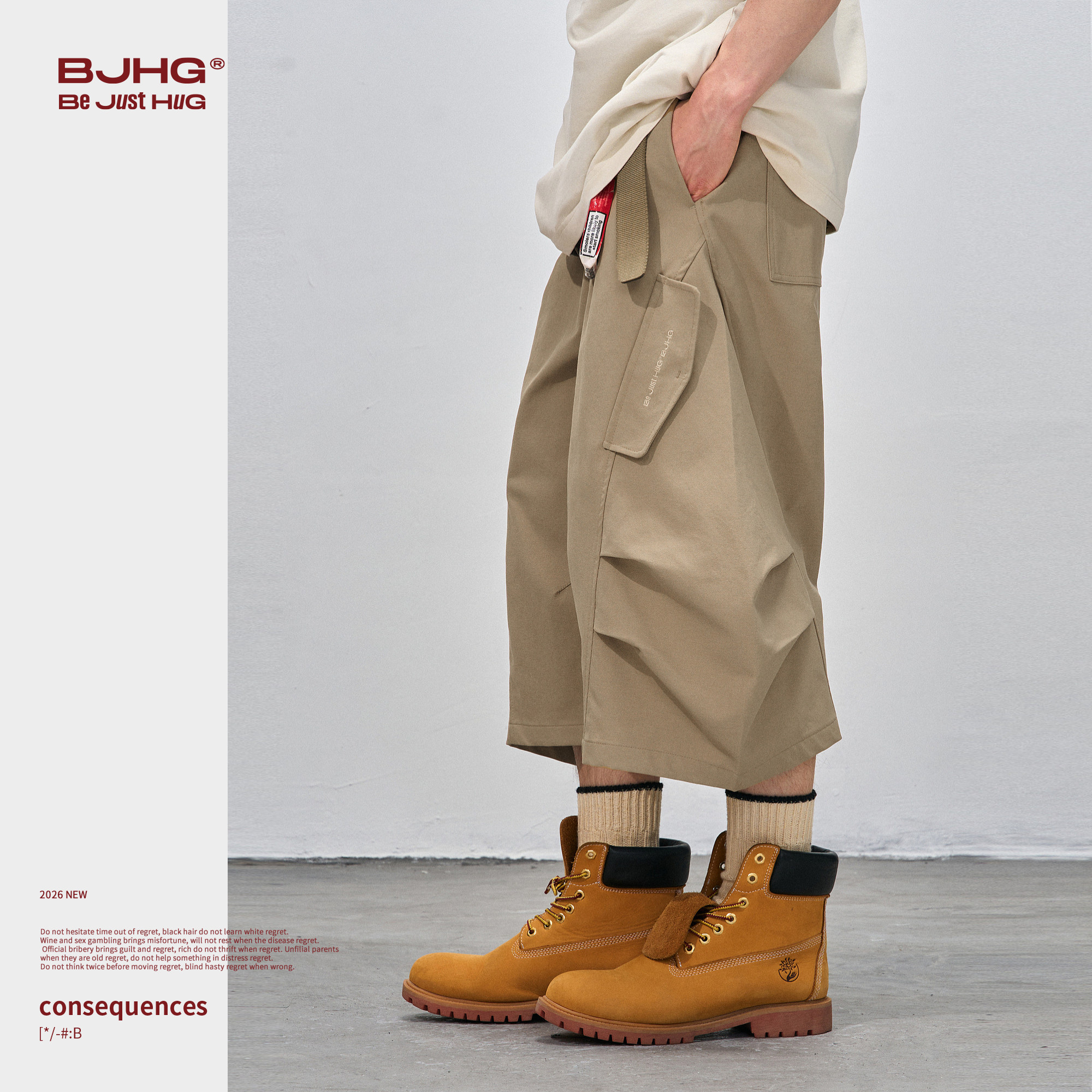 BJHG不计后果美式伞兵七分裤子男款夏薄款宽松工装短裤男士休闲裤