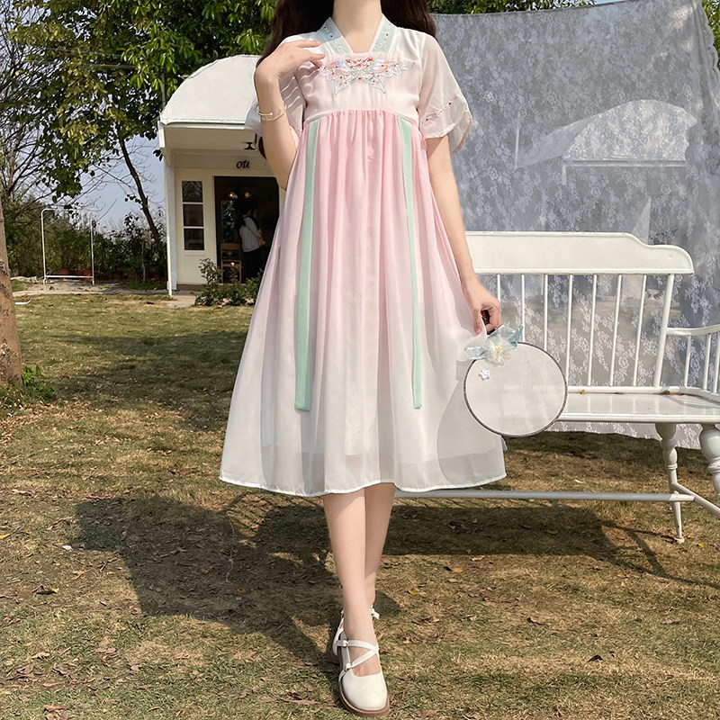 汉服女大童夏款古装超仙雪纺连衣裙中国风170码裙子改良飘逸13岁