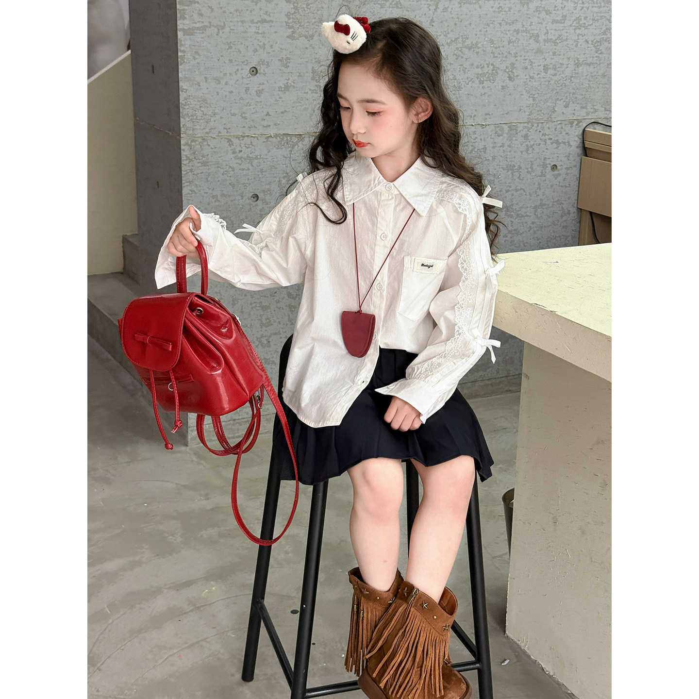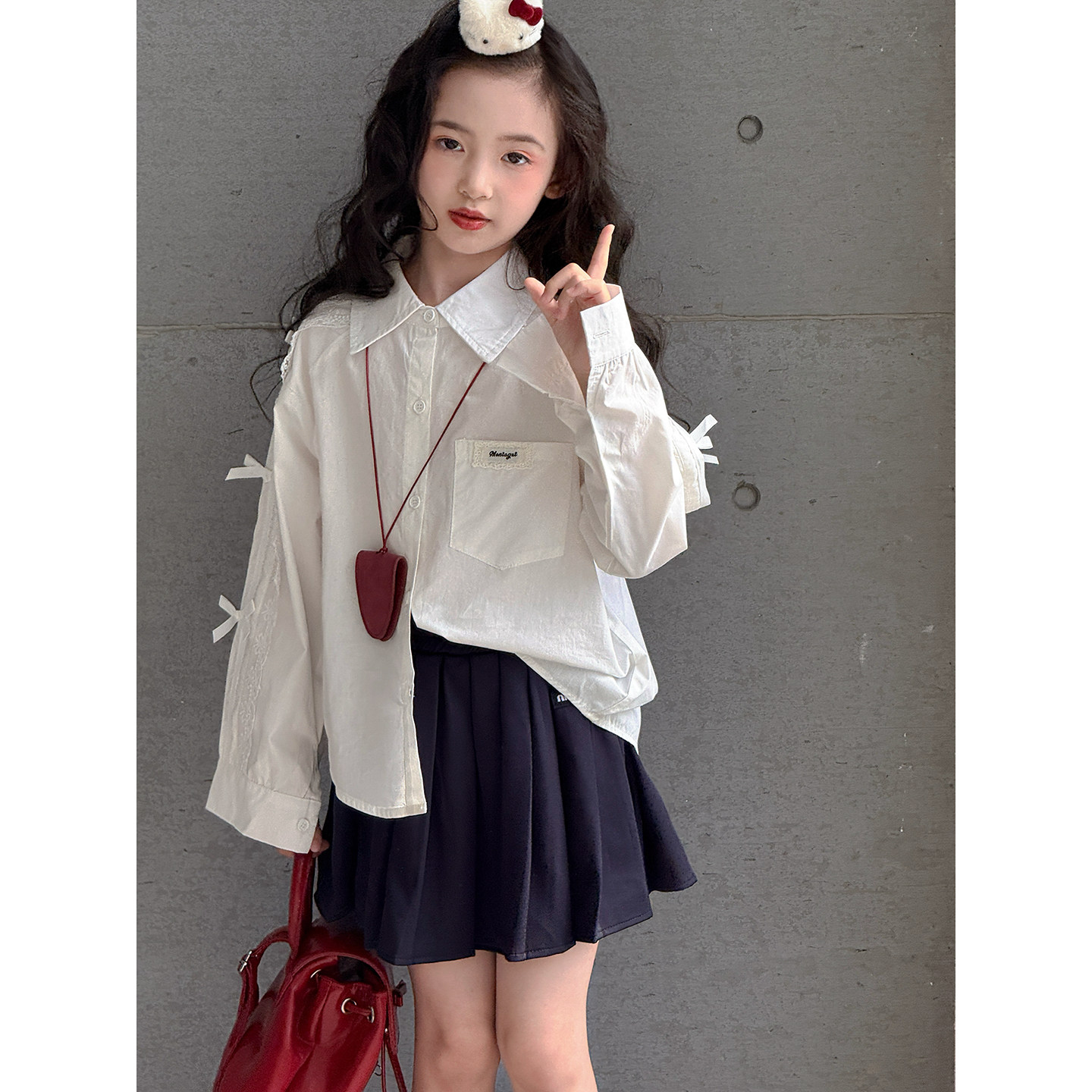 女童衬衫2026春季新款儿童韩版休闲翻领衬衣中大童洋气上衣春装潮