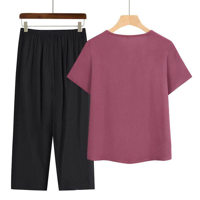 妈妈夏季短袖套装奶奶两件套中老年宽松休闲女款上衣舒适老人衣服