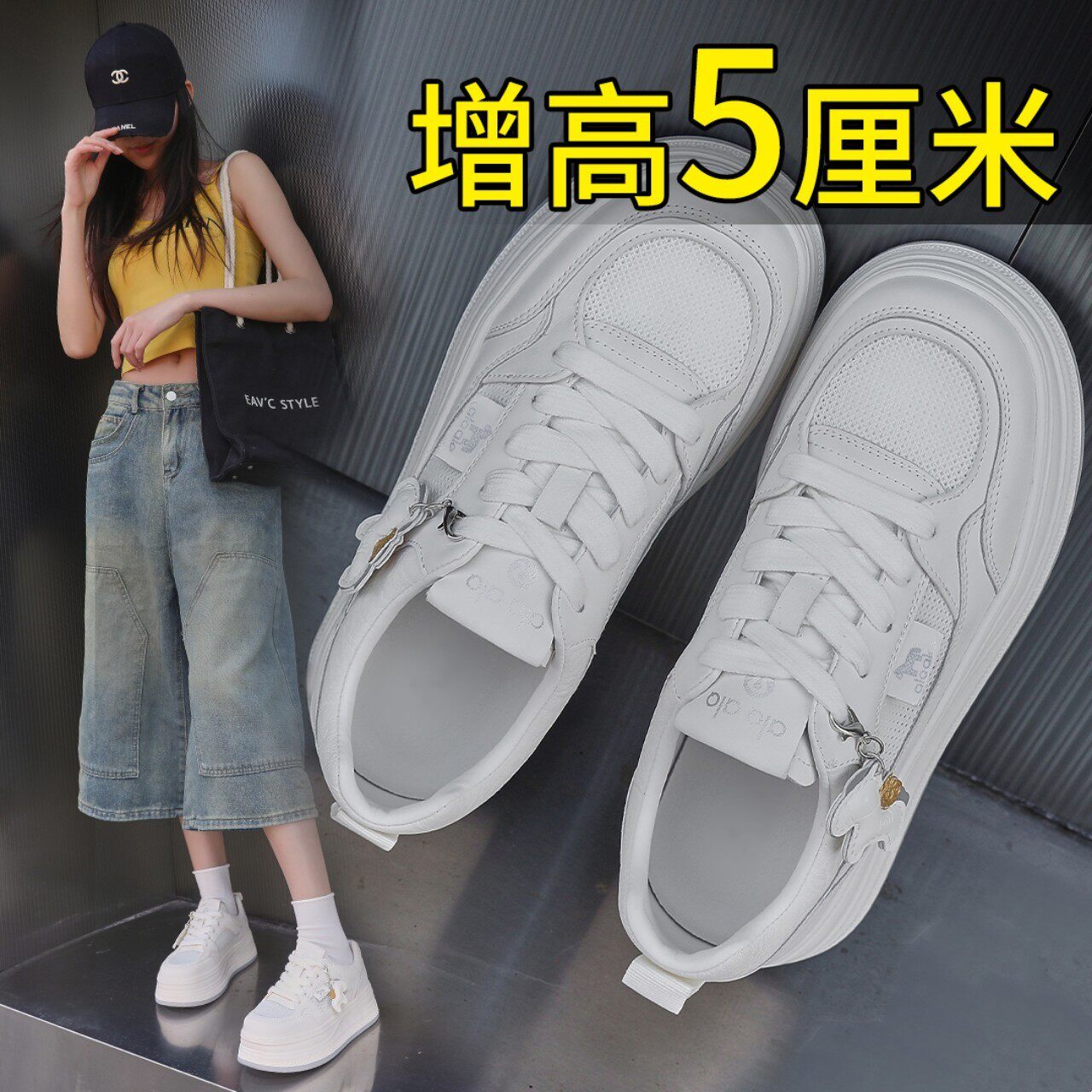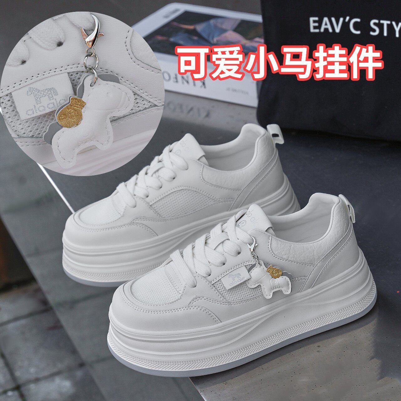 艾模儿夏季皮配网透气小白鞋网面厚底百搭板鞋女鞋时尚百搭舒适