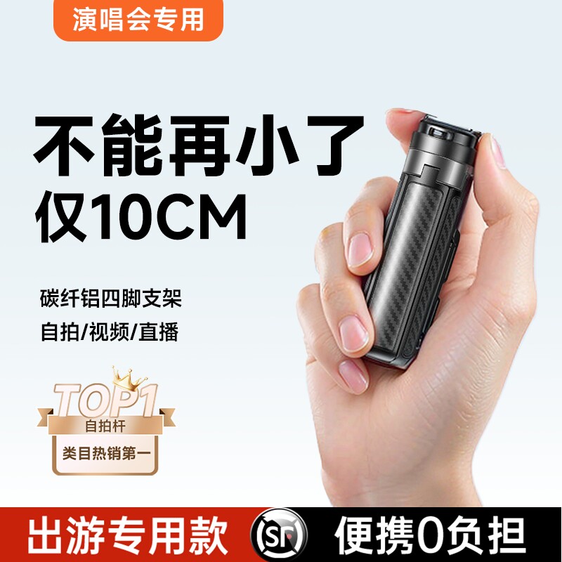 李森迷你自拍杆2026新款落地三脚架旅游便携式拍照神器手机支架拍摄360度旋转手持防抖蓝牙vlog演唱会专用