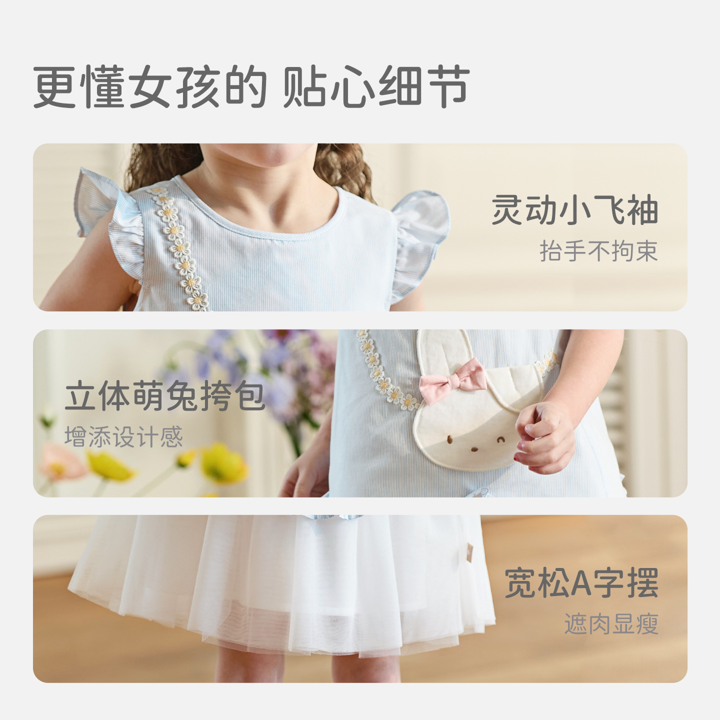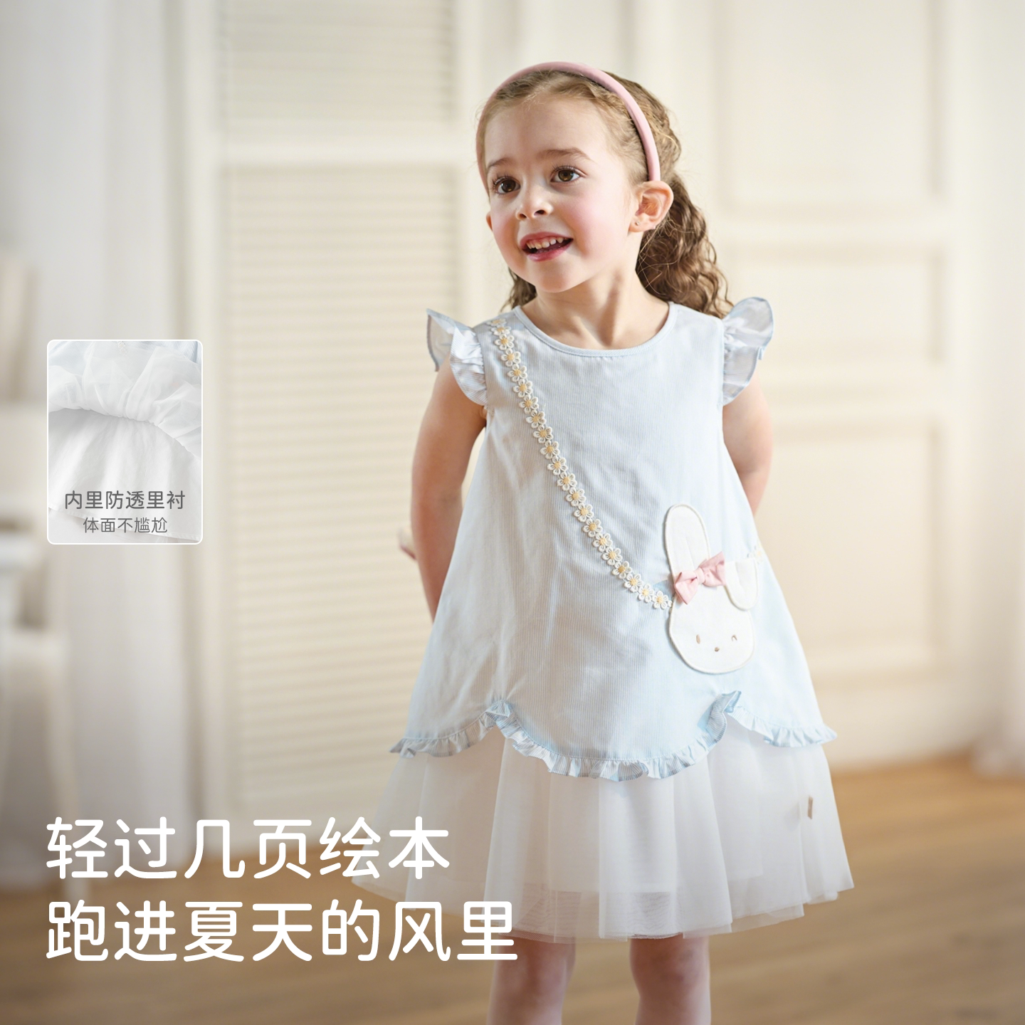 戴维贝拉女童夏季连衣裙新款莱赛尔凉感纱裙蓝色公主裙女宝裙子