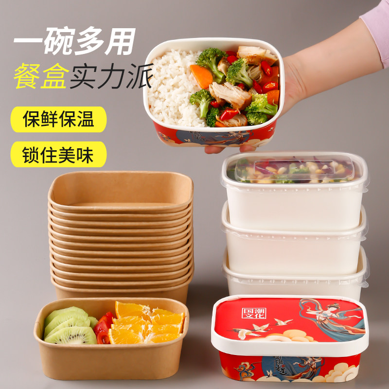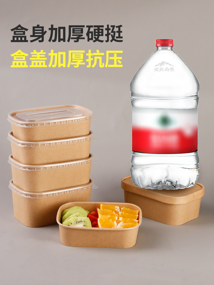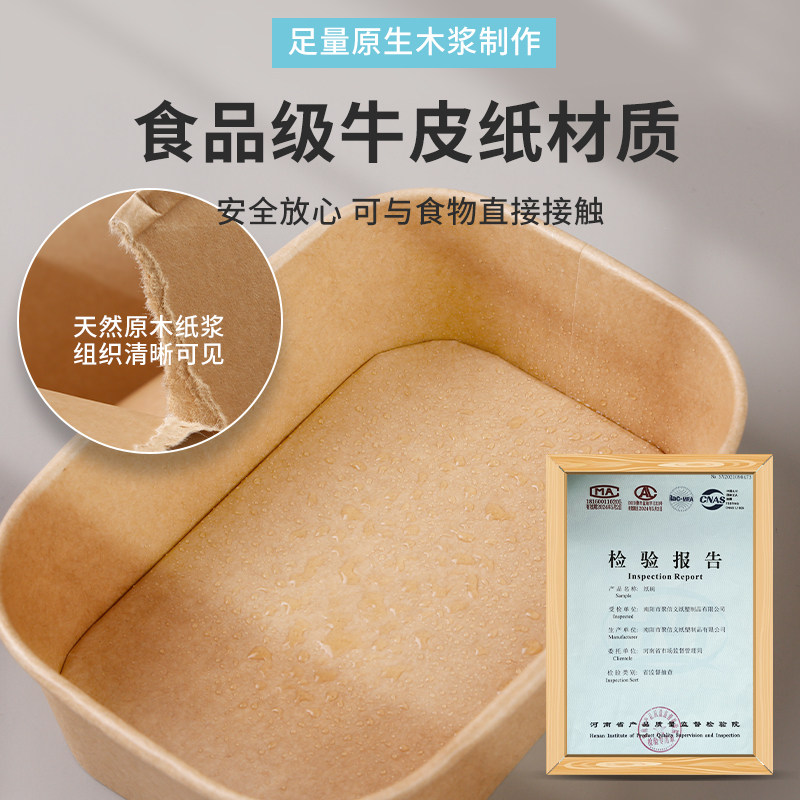 一次性餐盒牛皮纸长方形打包盒外卖饭盒加厚加硬食品专用高颜值