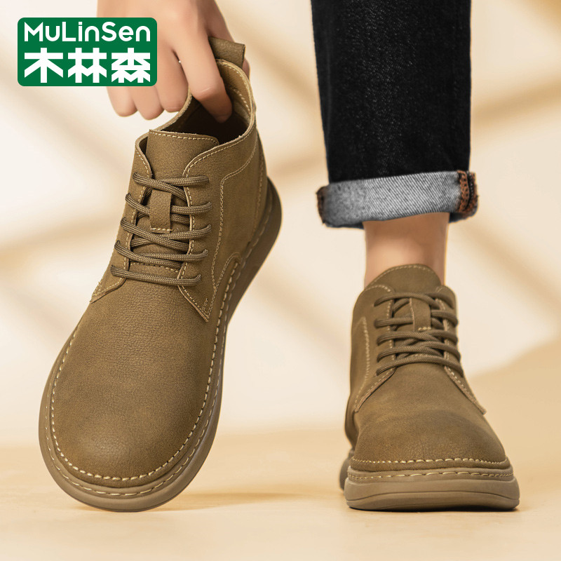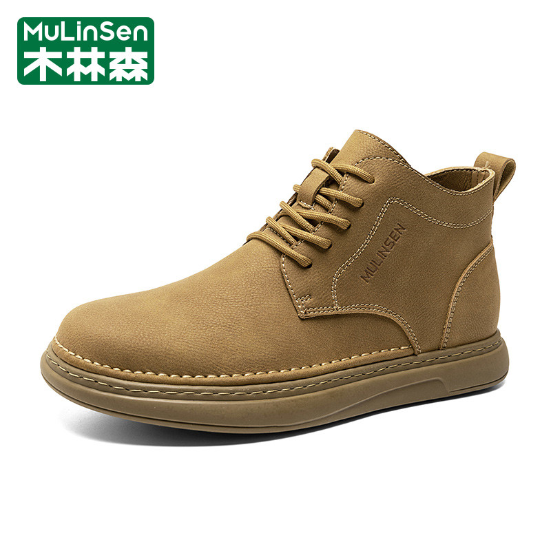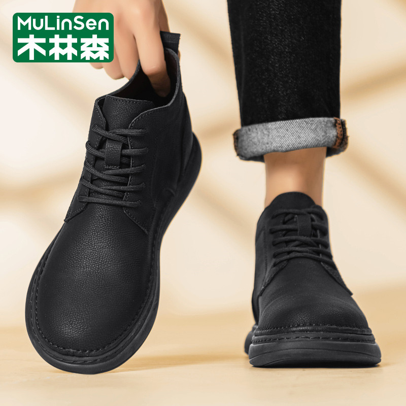 木林森男鞋2026年新款春季休闲运动商务复古高帮工装马丁皮鞋短靴