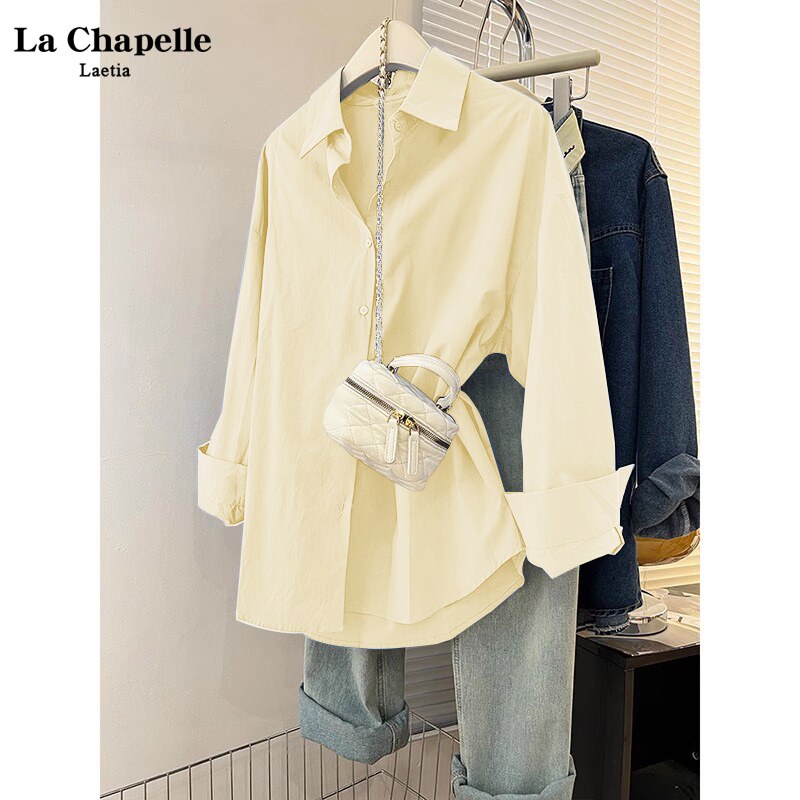 拉夏贝尔蓝色衬衣女款2026新款爆款长袖衬衫小个子打底衫上衣夏装