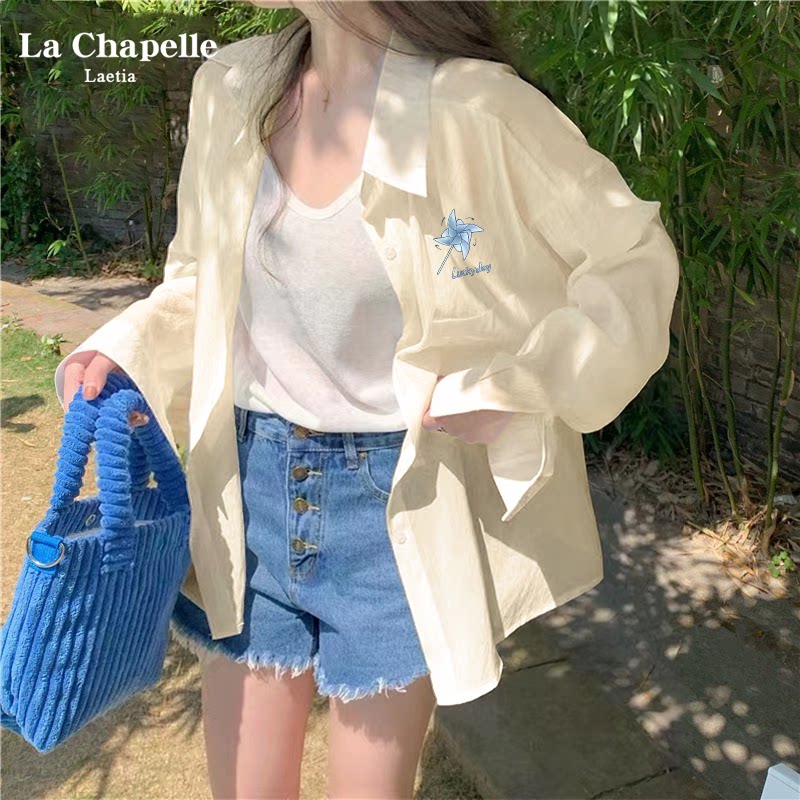 拉夏贝尔蓝色衬衣女款2026新款爆款小个子衬衫女上衣长袖外套夏装