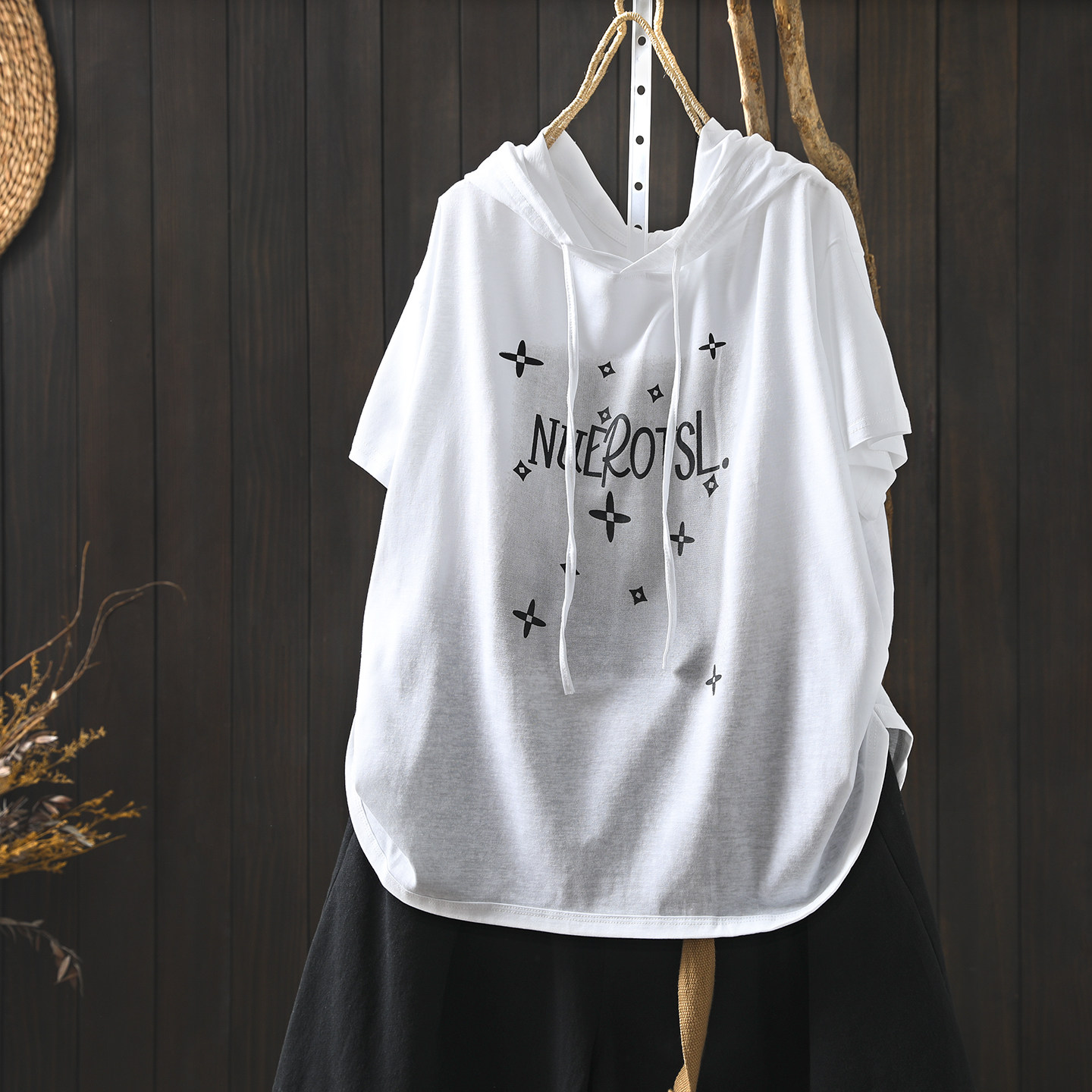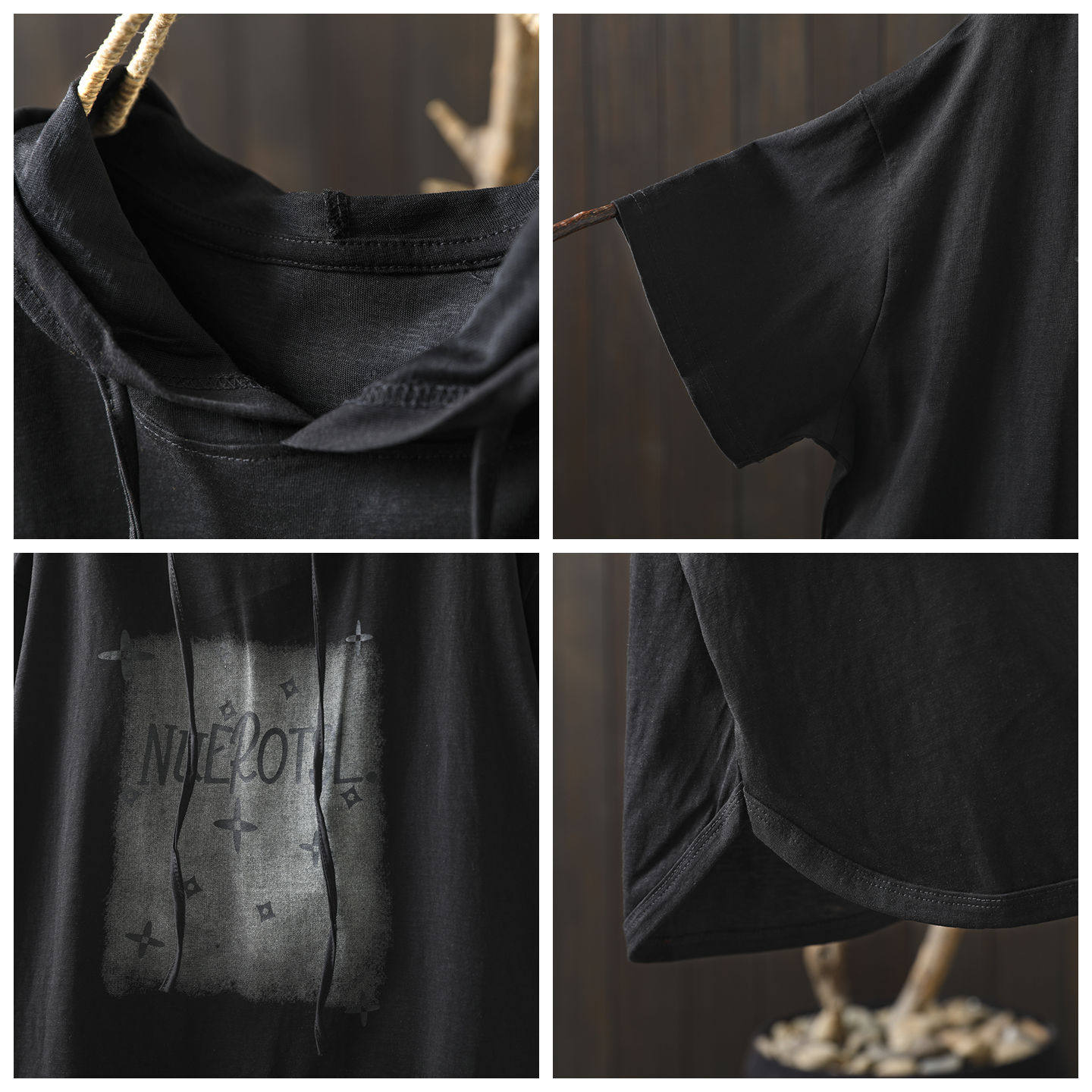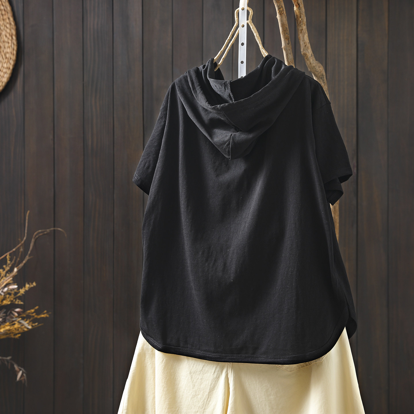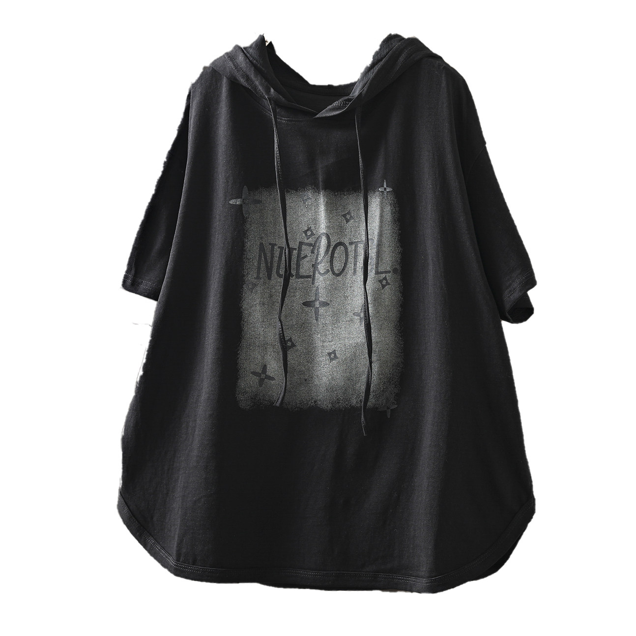 特别好看的2026新款夏装女款超流行黑色宽松胖mm显瘦连帽上衣短袖