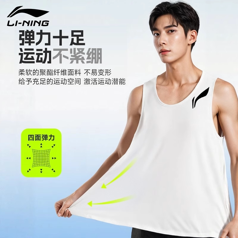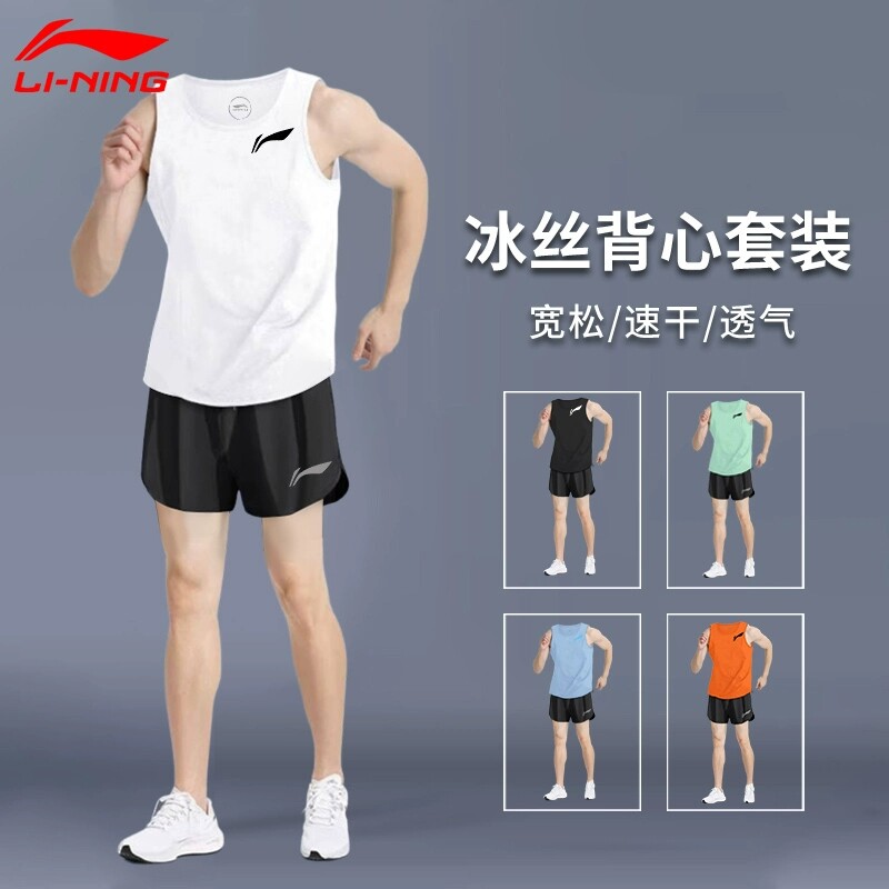 李宁运动套装男夏季马拉松跑步背心新款专用比赛服健身训练田径服