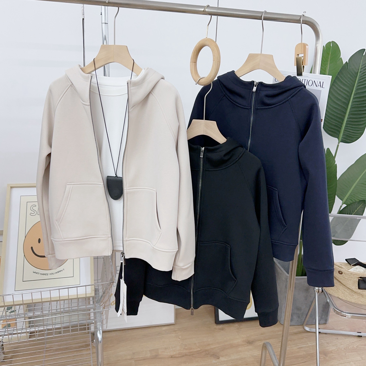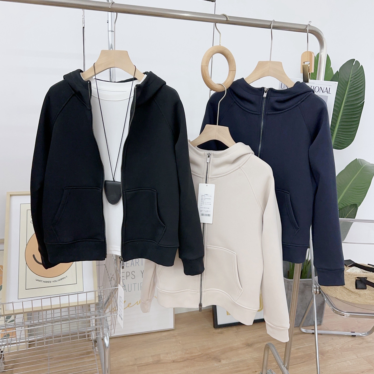 秋冬加绒外套女2025新款小个子连帽修身卫衣黑色休闲开衫加厚上衣