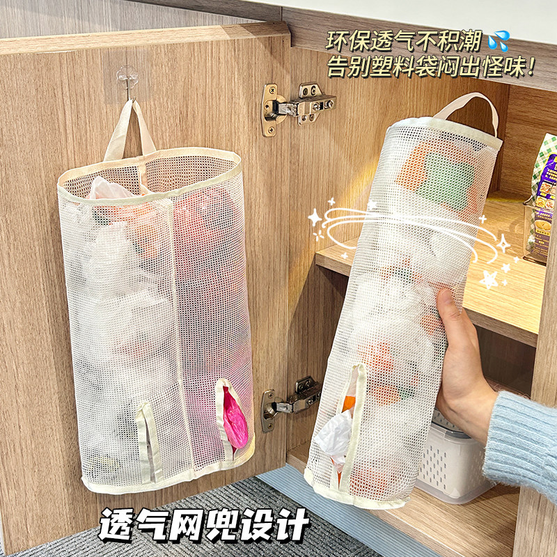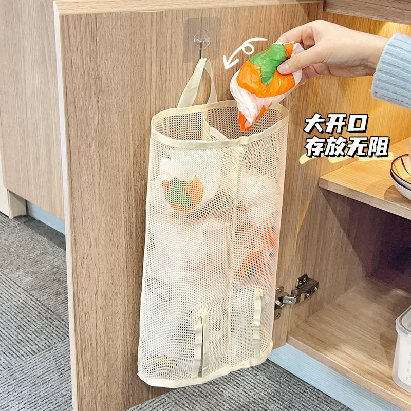 厨房垃圾袋收纳神器壁挂式大容量购物袋子整理储物挂袋塑料袋网兜