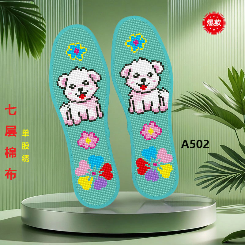 形艺七层十字绣鞋垫新款2025印花带针线卡通小狗刺绣吸汗透气防臭