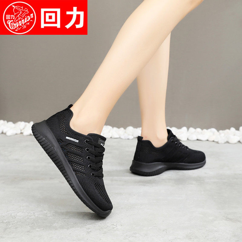 回力女鞋夏季新款透气网面鞋轻便防滑休闲运动鞋全黑工作鞋跑步鞋