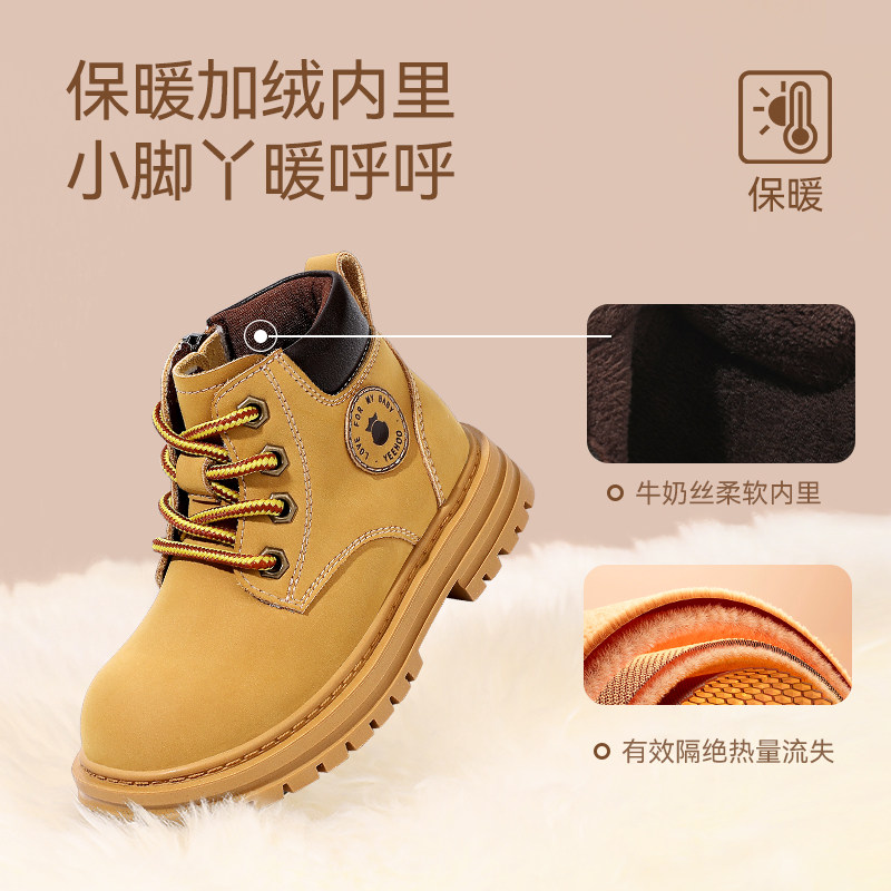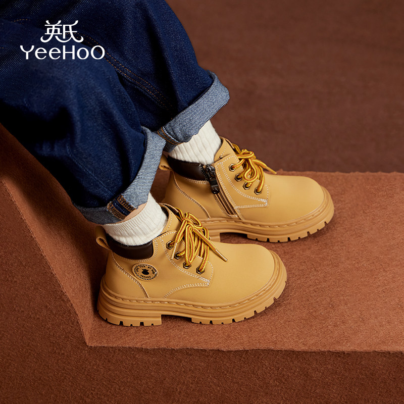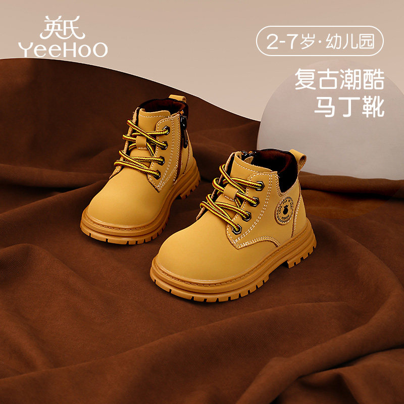 英氏童鞋儿童马丁靴男童新款冬季女童加绒鞋子小童短靴宝宝靴子