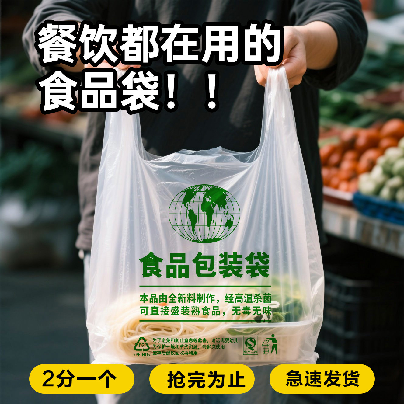 加厚食品袋透明塑料袋子食品级塑料袋超市手提背心袋方便袋打包袋