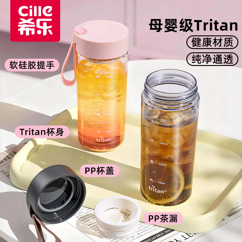 希乐水杯男女新款高颜值tritan便携咖啡杯学生杯子夏季防摔塑料杯