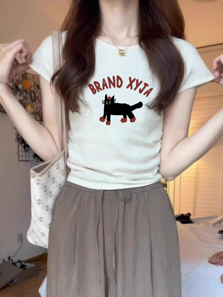 圆领重磅短袖t恤2026夏季新款超火粉色正肩修身短款上衣服女款ins