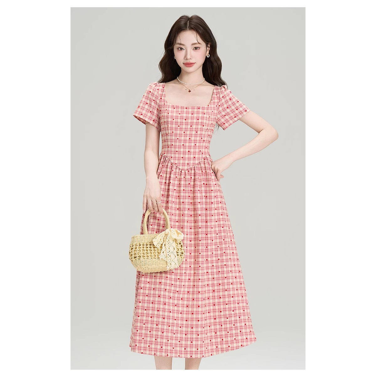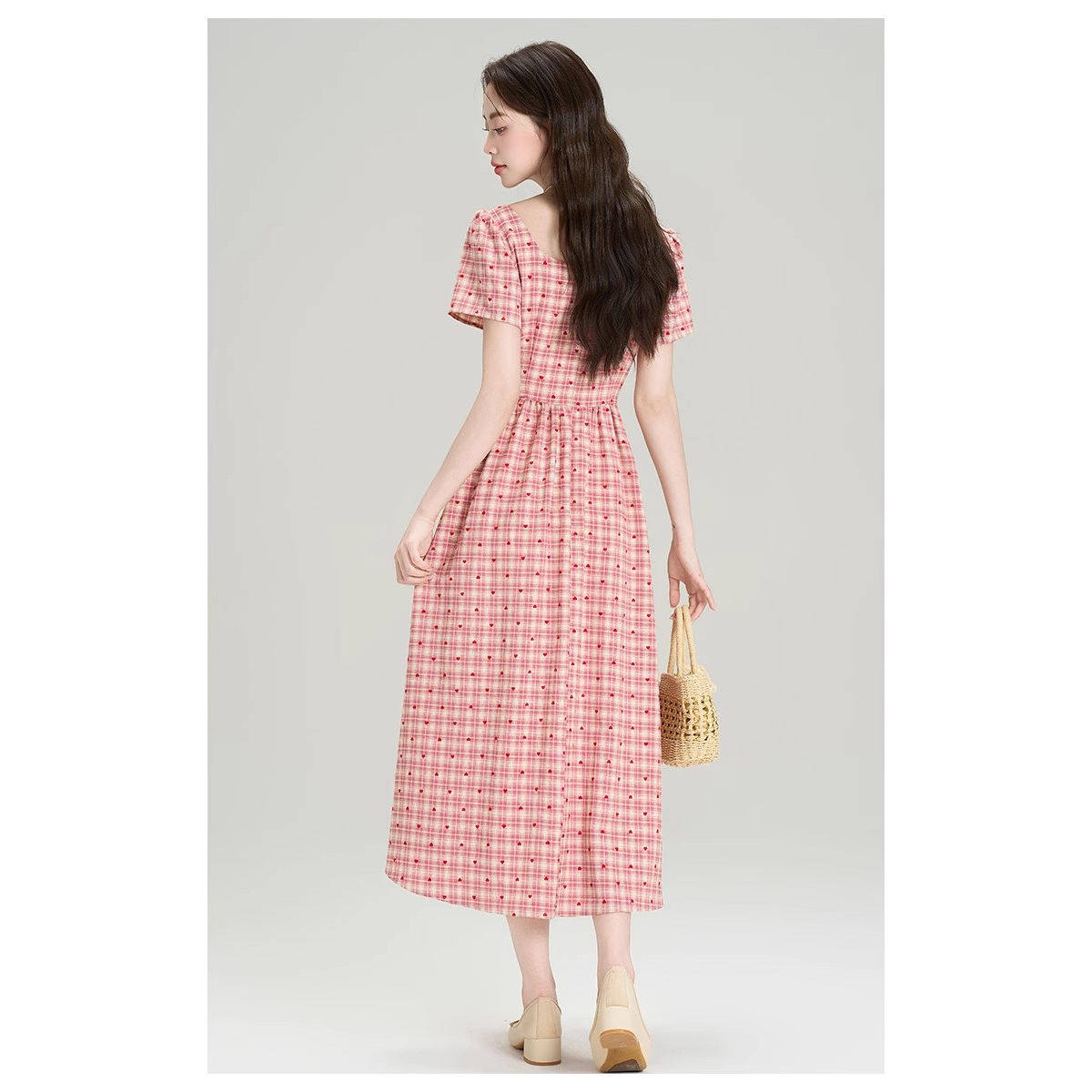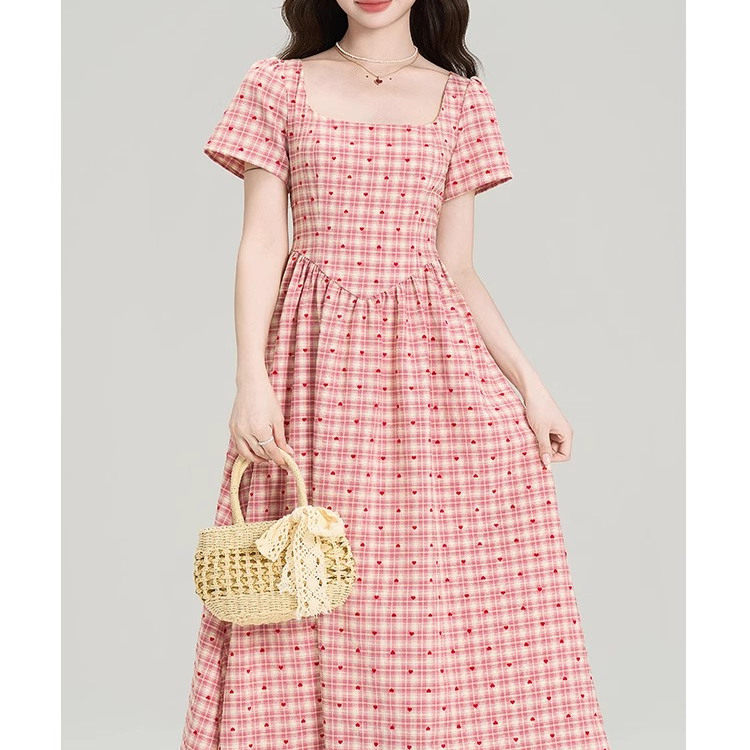 488收腰长连衣裙甜美少女感格纹A字裙轻奢高级感长裙裁剪纸样