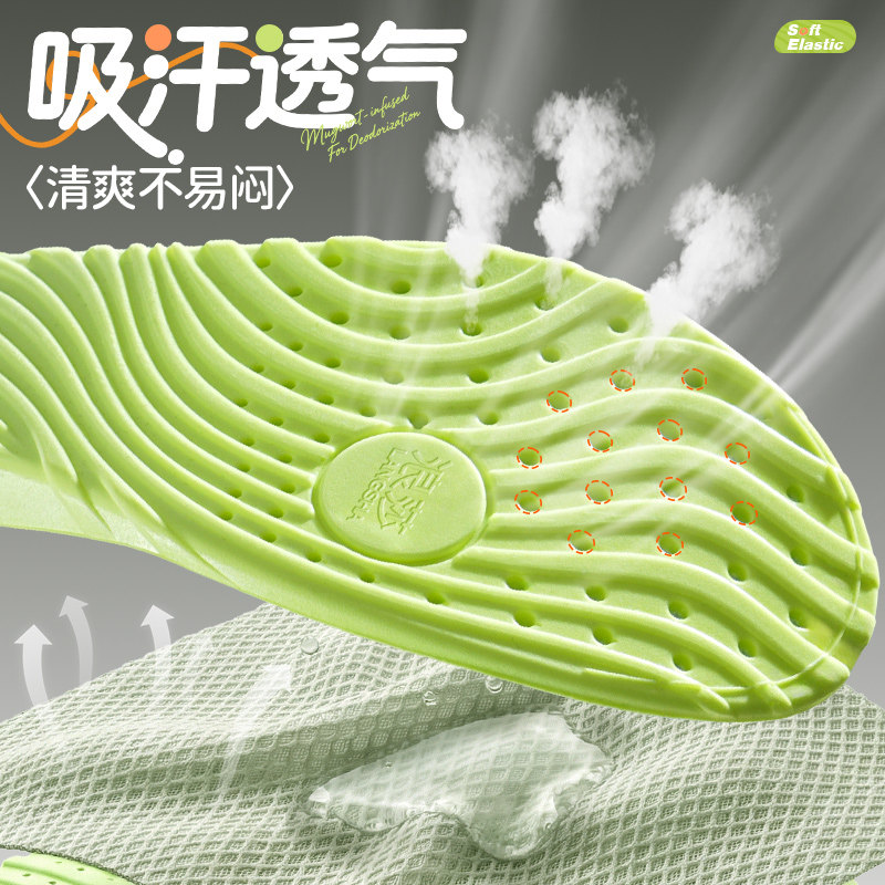 浪莎艾草防臭运动鞋垫男女吸汗气垫减震久站不累加厚软防痛踩屎感