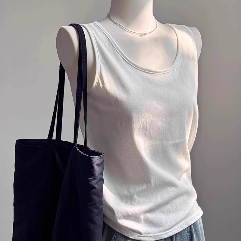 竹节棉白色背心吊带女款夏季外穿2026新款显瘦内搭打底上衣u领T恤