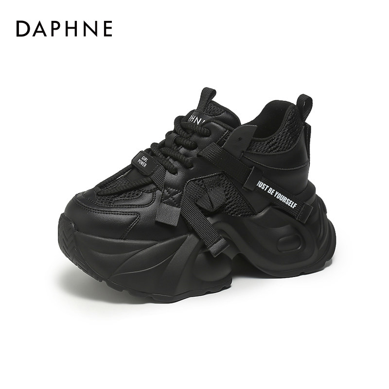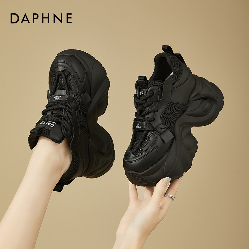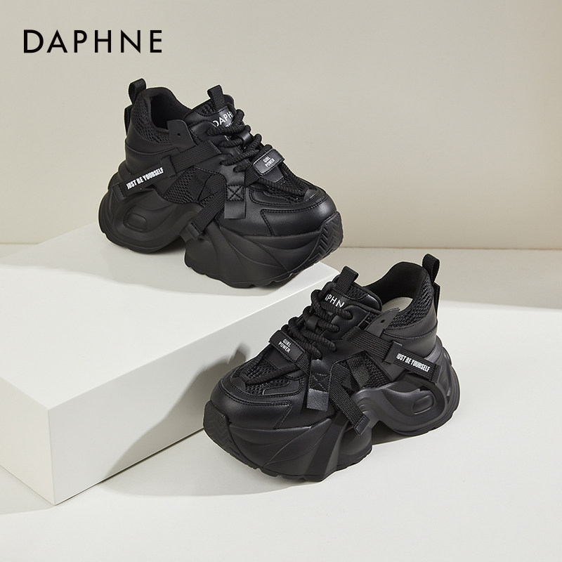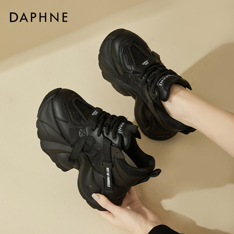 达芙妮黑色厚底老爹鞋休闲2026新款10cm8cm松糕小个子内增高女鞋