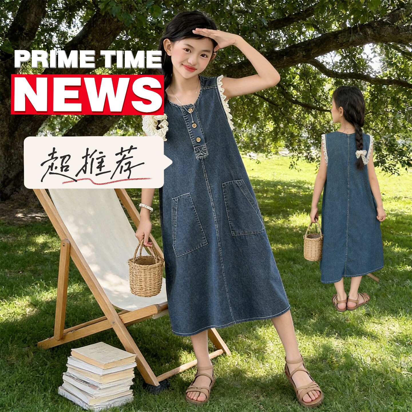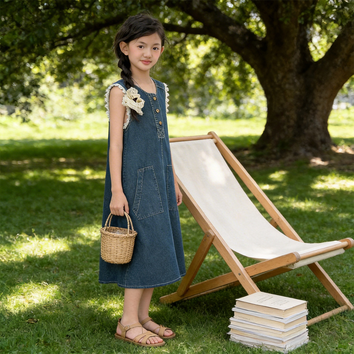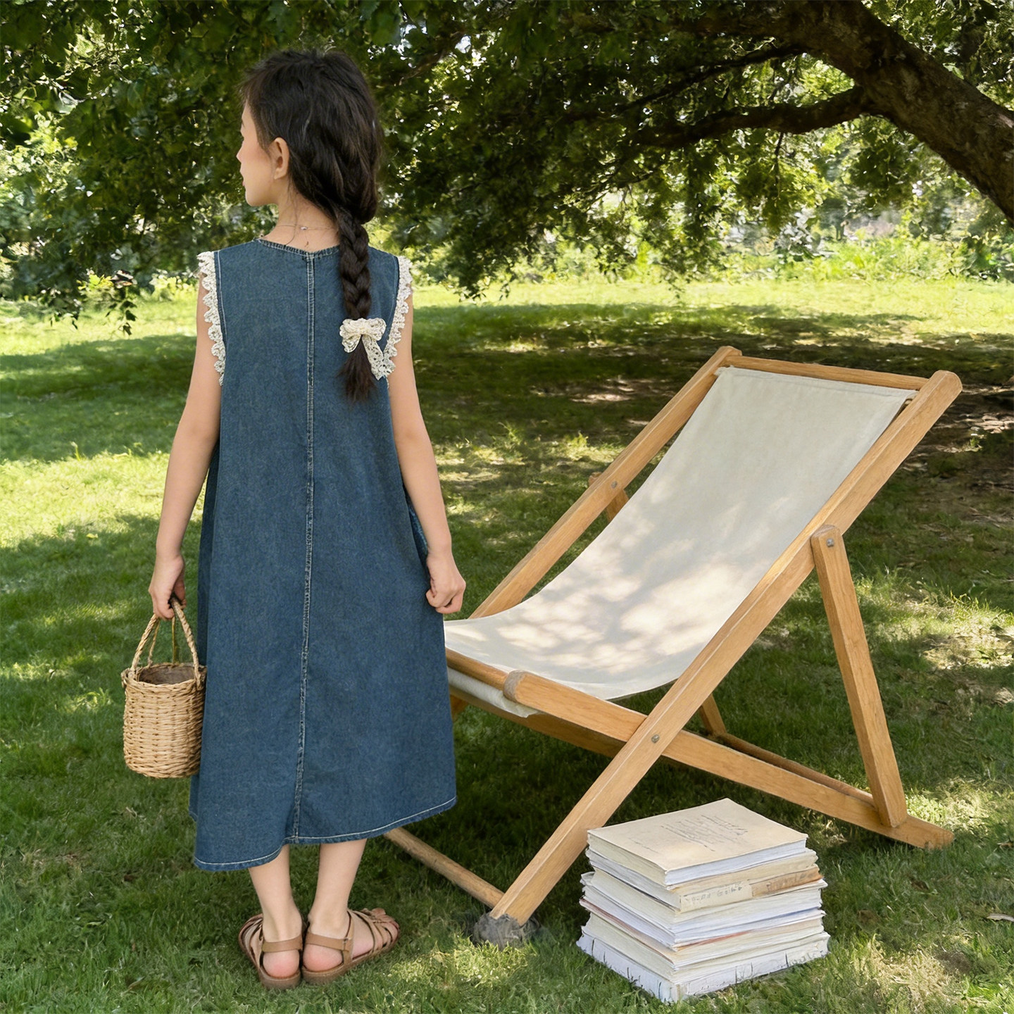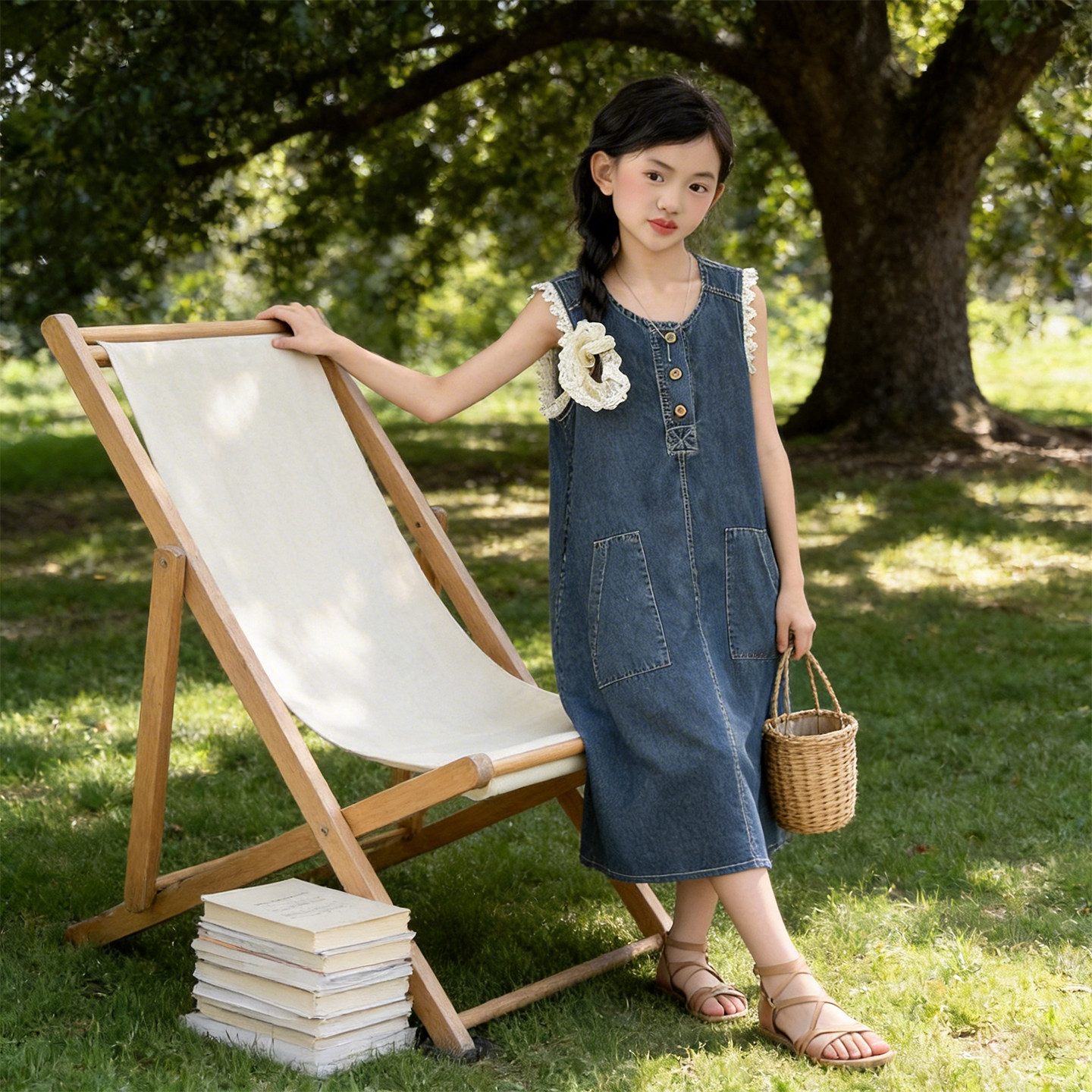 女童牛仔背心连衣裙夏季韩版中大童无袖中长裙高级感日常无袖薄款