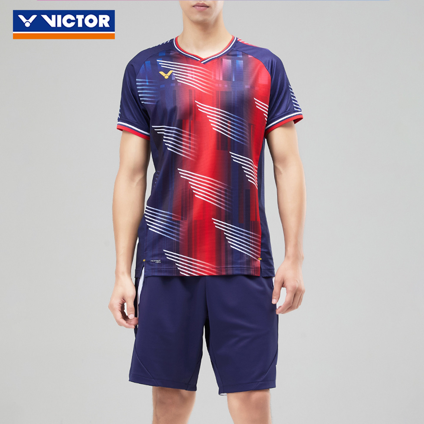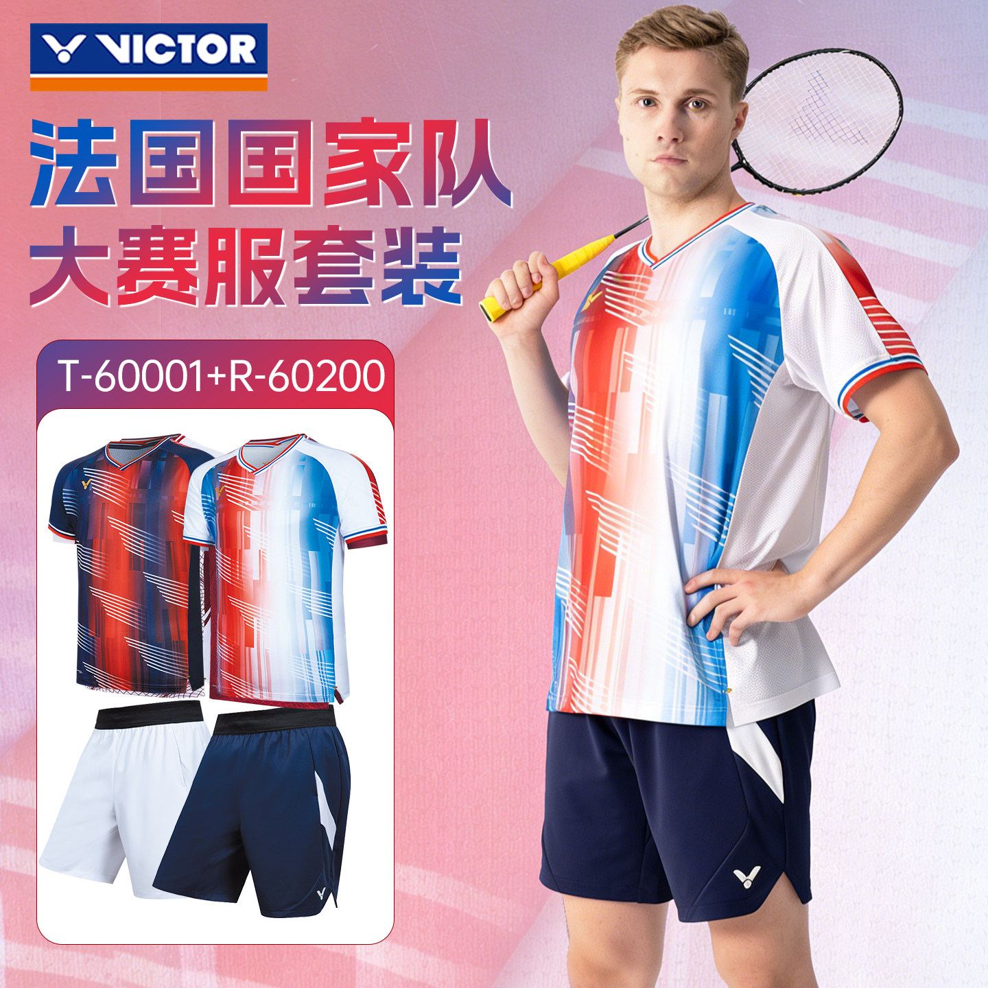 26新胜利羽毛球服victor法国国家队大赛服T60001男款速干运动短袖
