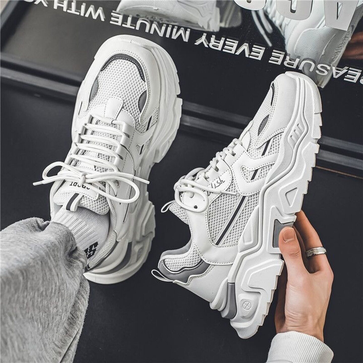 夏天新款内增高男鞋春秋青少年网面透气运动鞋厚底学生休闲老爹鞋