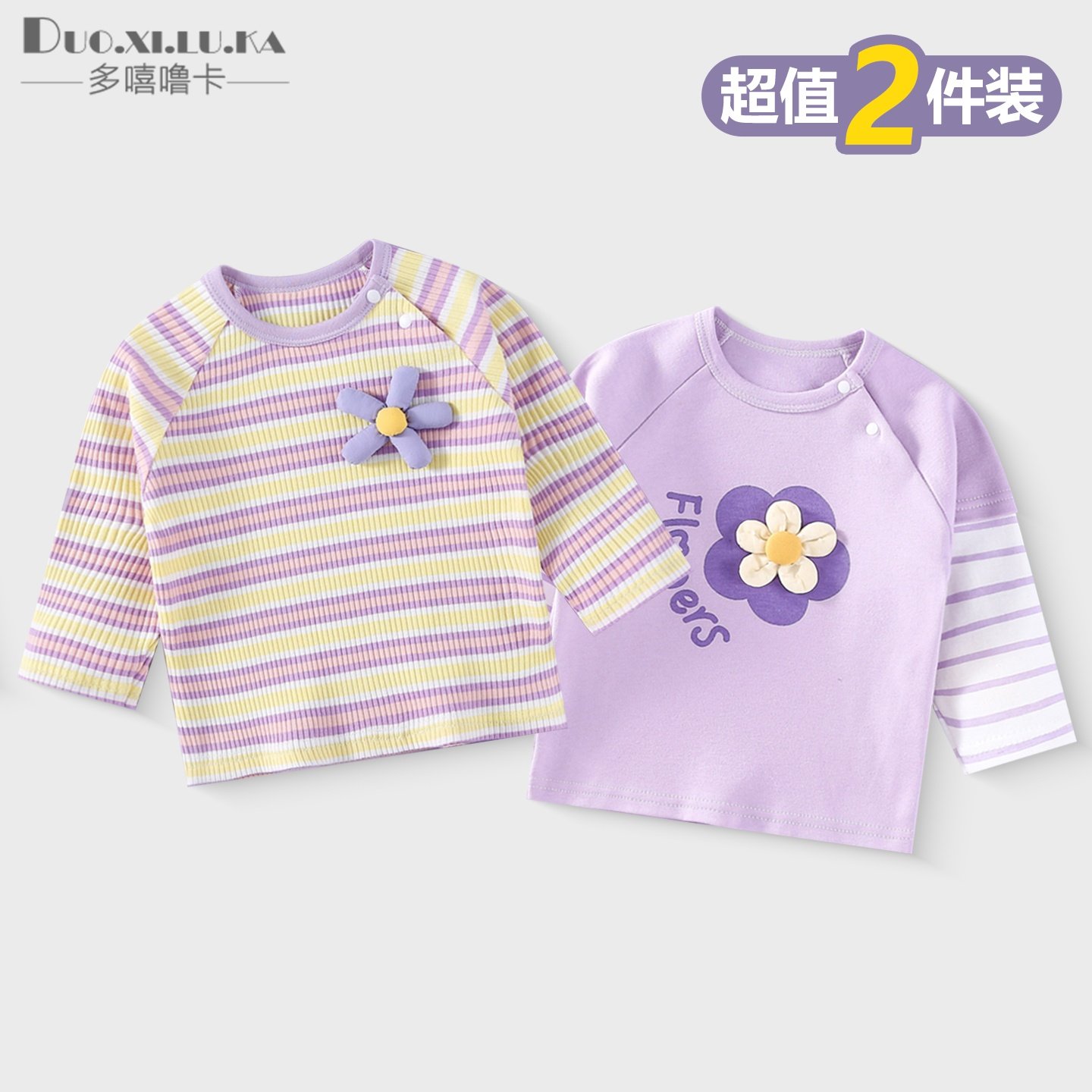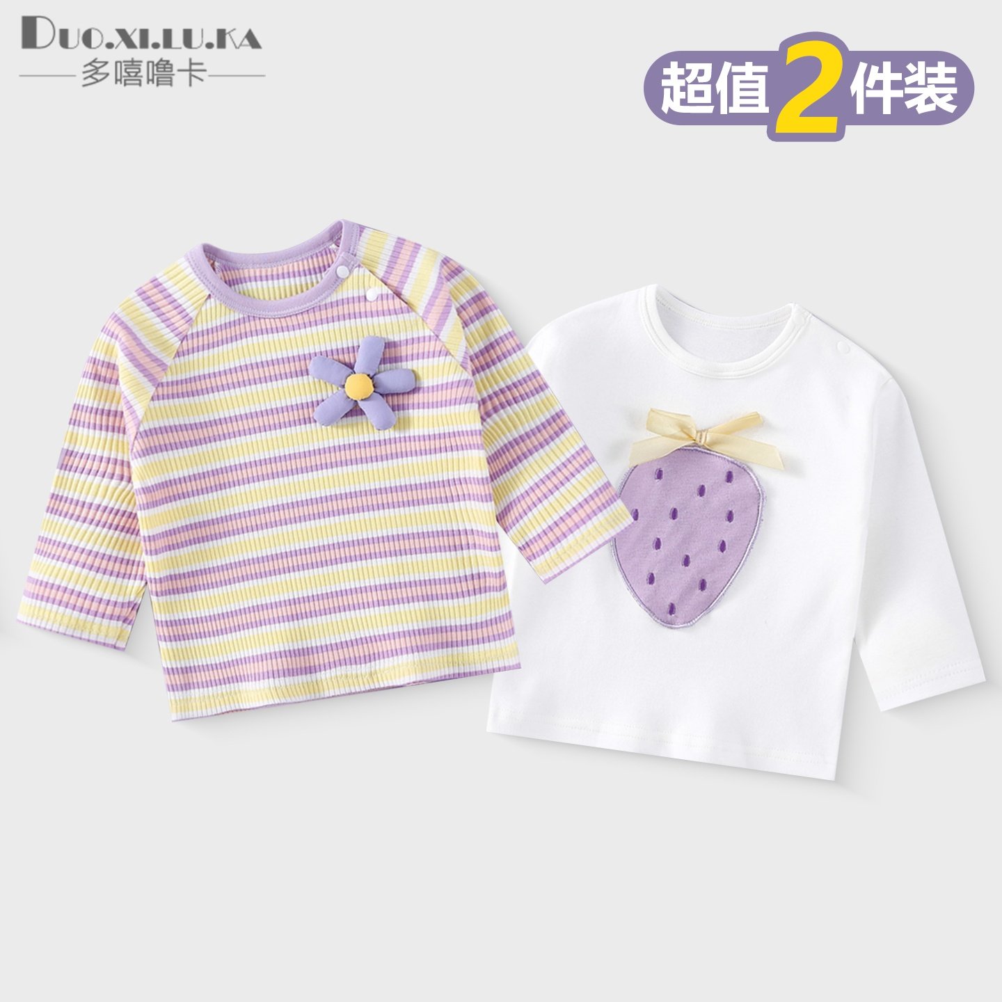 两件装 婴儿t恤春秋季儿童薄款纯棉长袖上衣男女童打底衫宝宝衣服