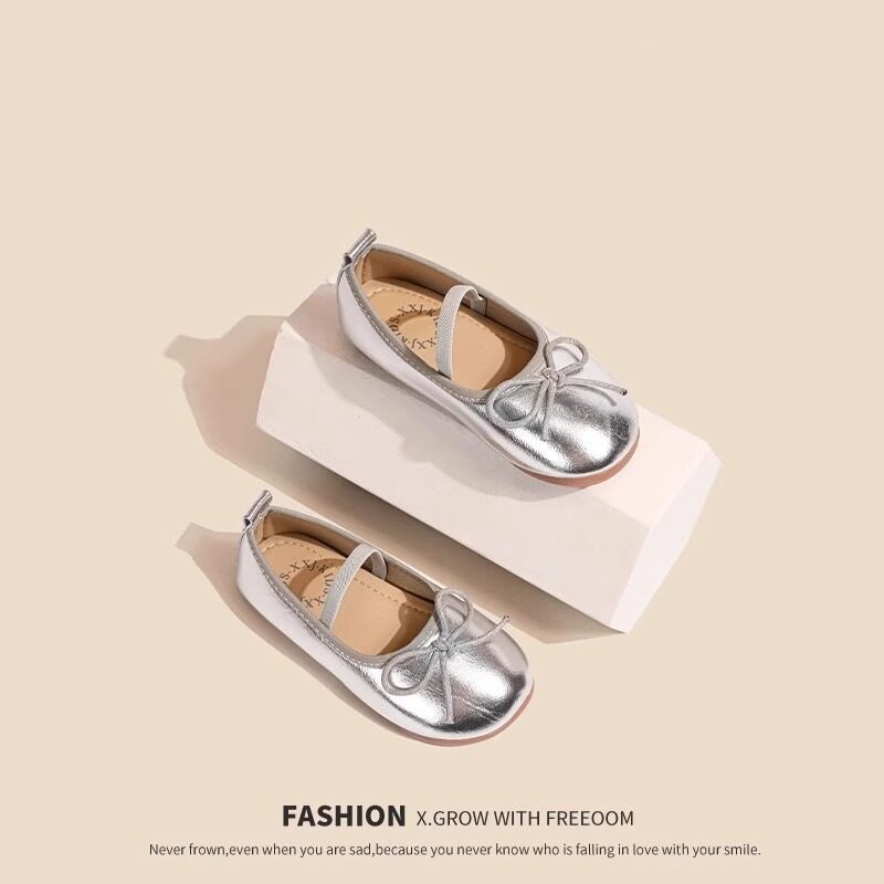 真皮女童蝴蝶结小皮鞋2025春季新款简约百搭舒适儿童鞋软底公主鞋