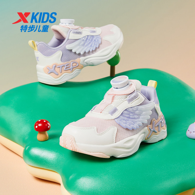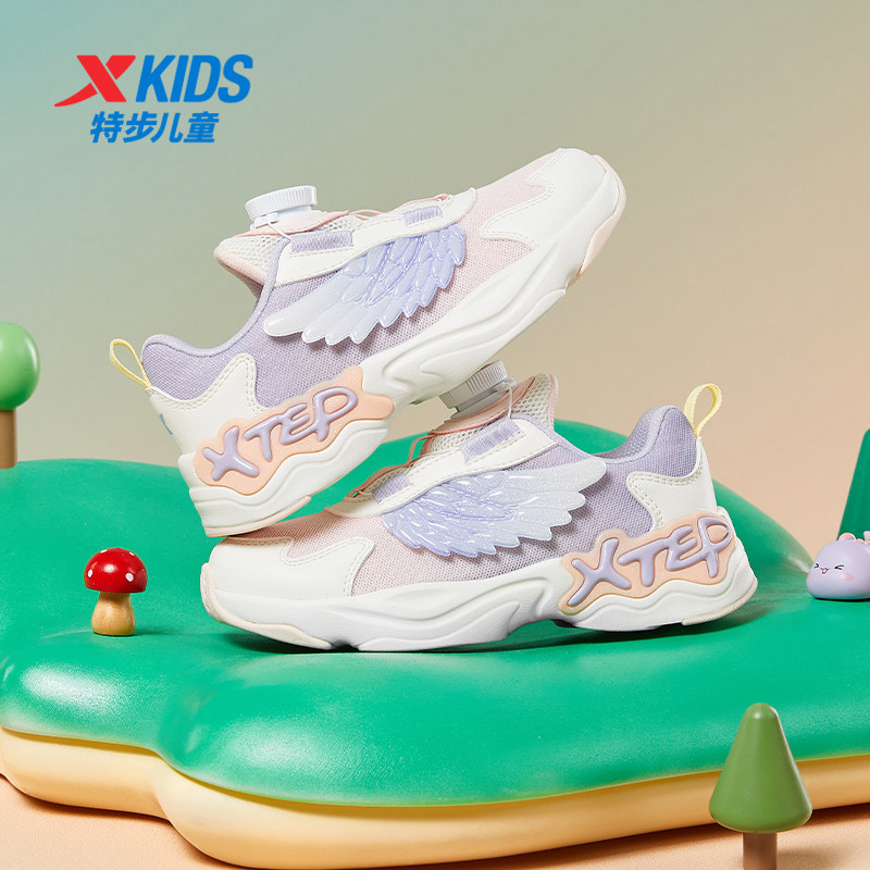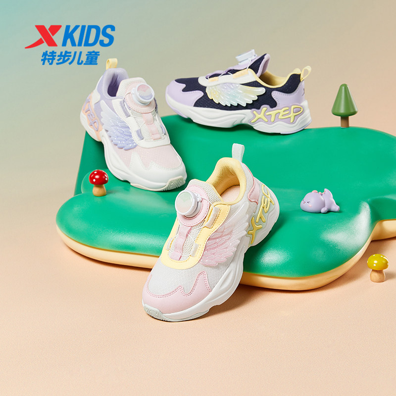 特步女童鞋2026新款儿童鞋运动鞋女孩皮面防水旋钮扣休闲鞋子