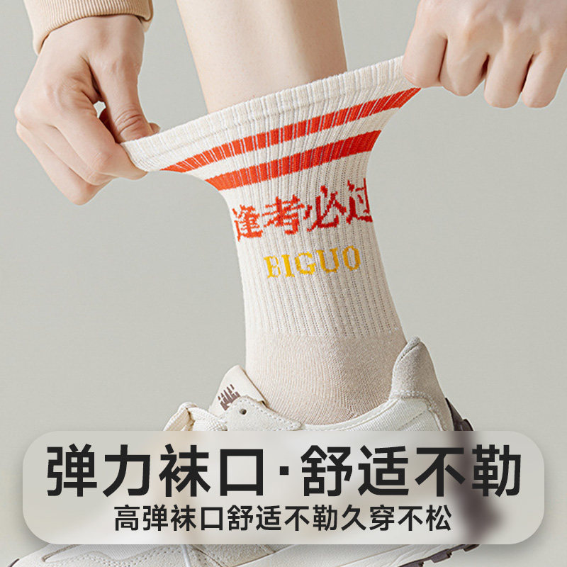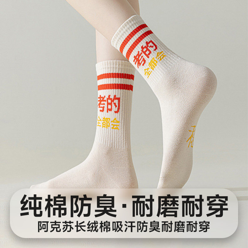 考研考试逢考必过袜子女男款中筒袜纯棉考的都会金榜题名高考中考