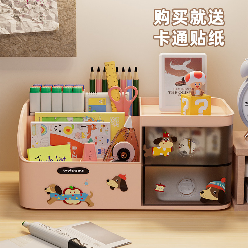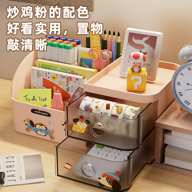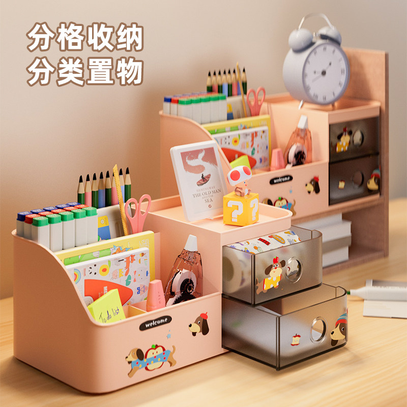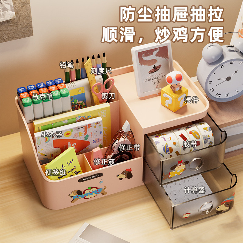 桌面文具收纳盒抽屉式大容量多功能整理盒学生笔筒桌上分格置物架