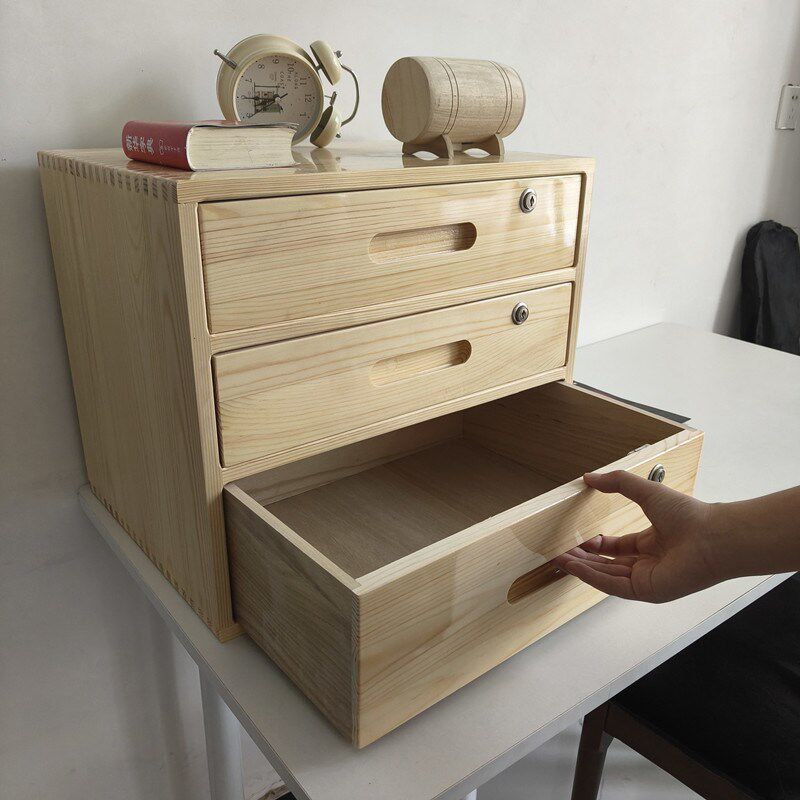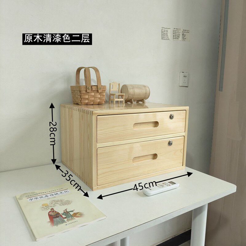 实木桌面收纳盒办公室书桌下多层抽屉式储物柜木质整理箱带锁木制