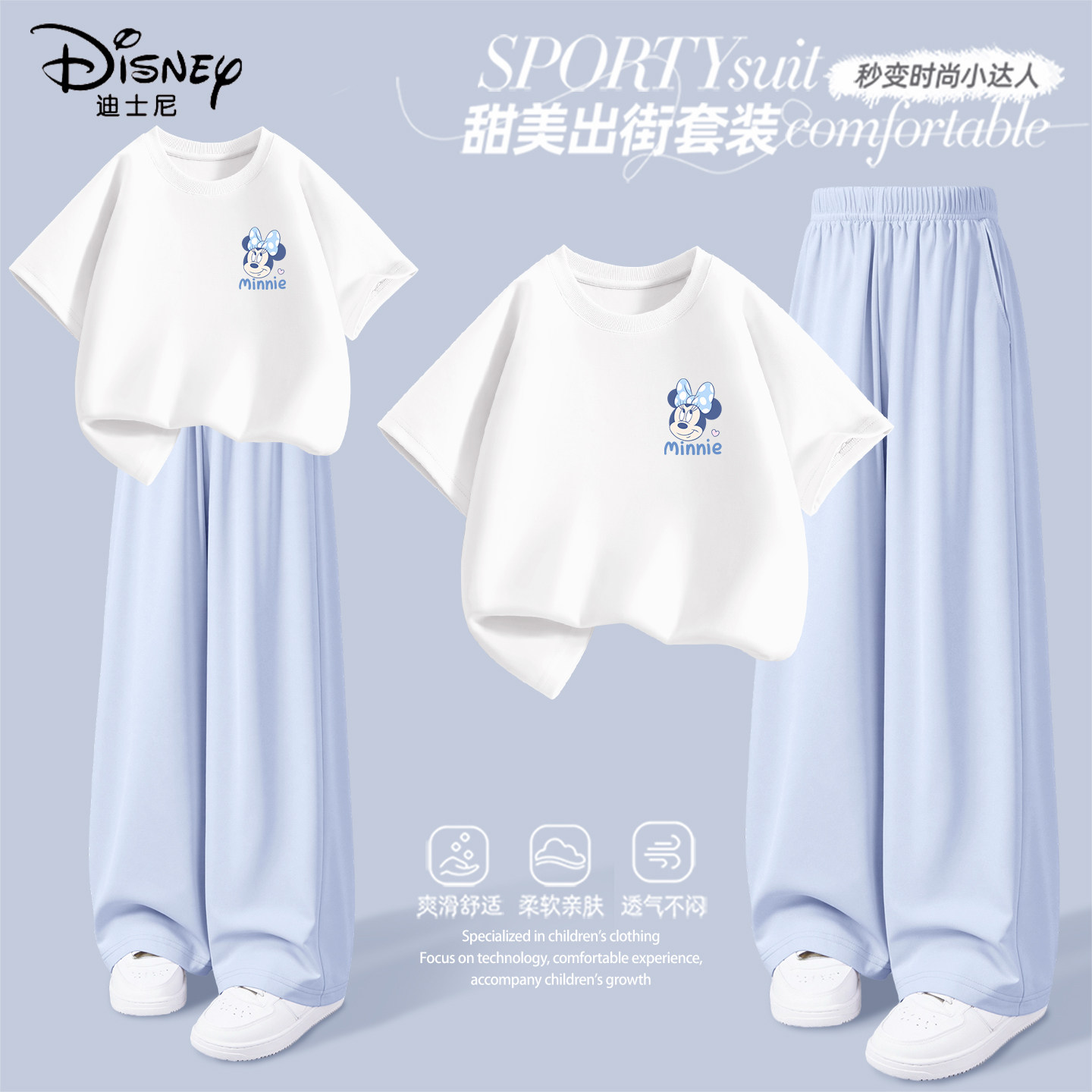 迪士尼童装女童夏装套装2026新款女孩衣服运动防蚊裤儿童短袖t恤