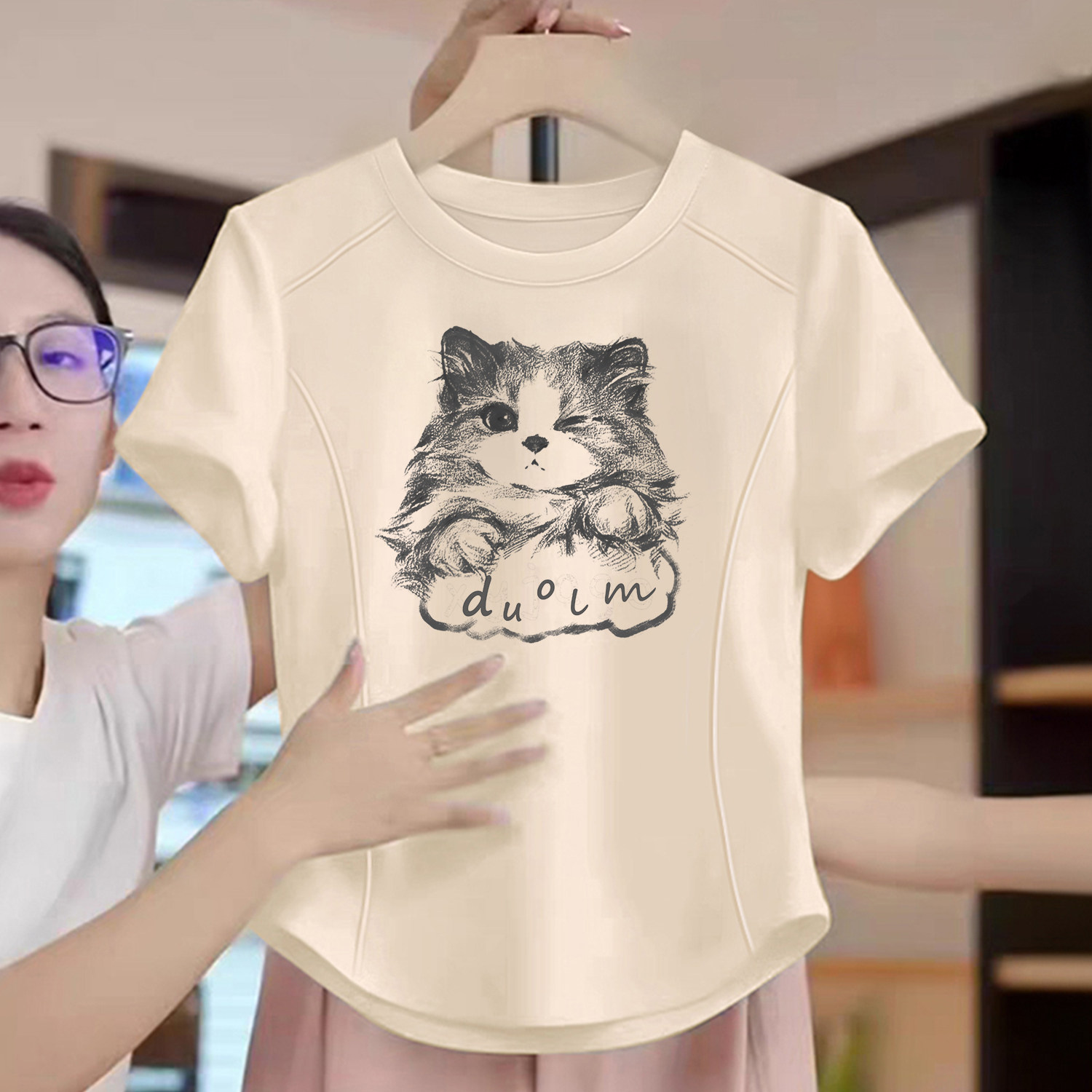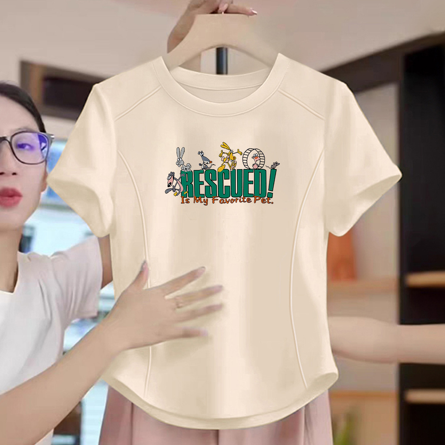 童趣女童短袖t恤纯棉夏季2026新款儿童夏装正肩圆领鱼骨上衣短款