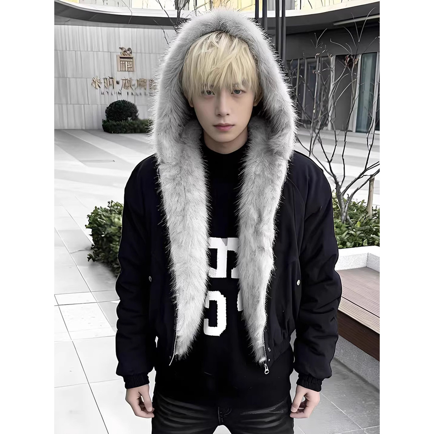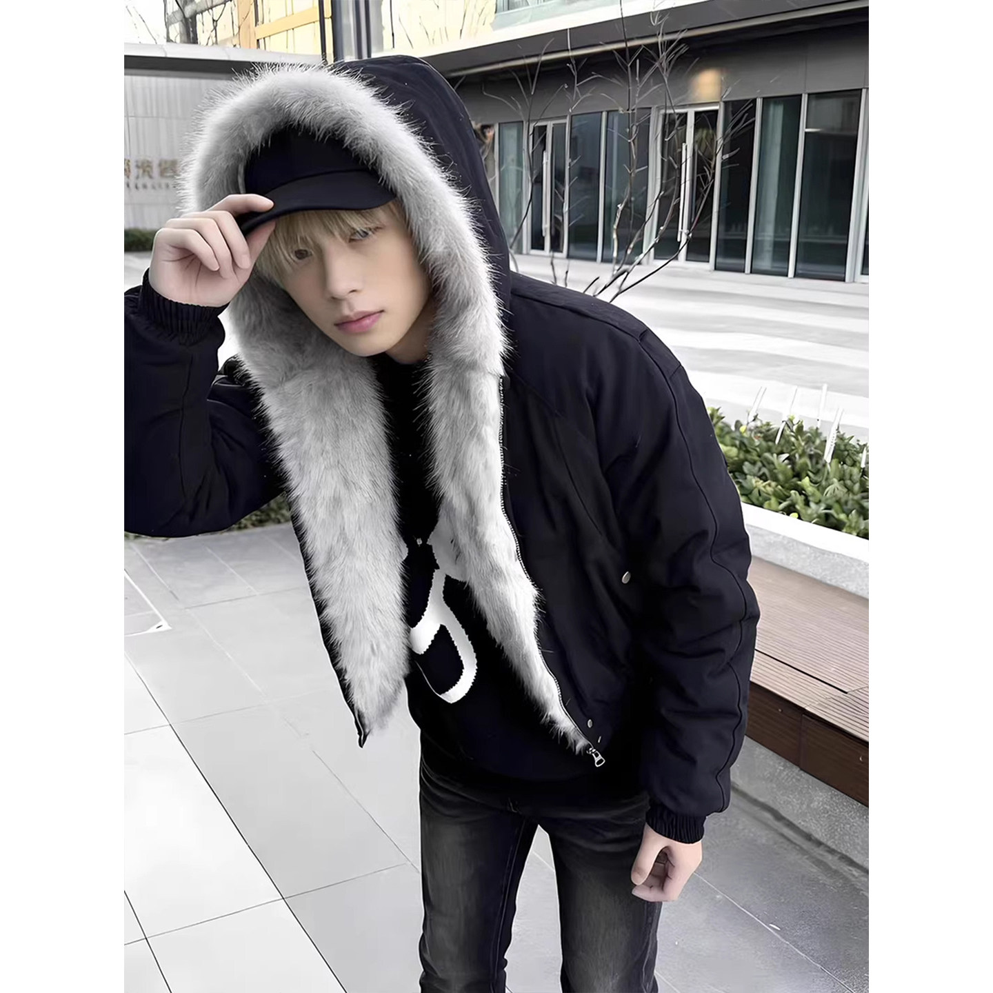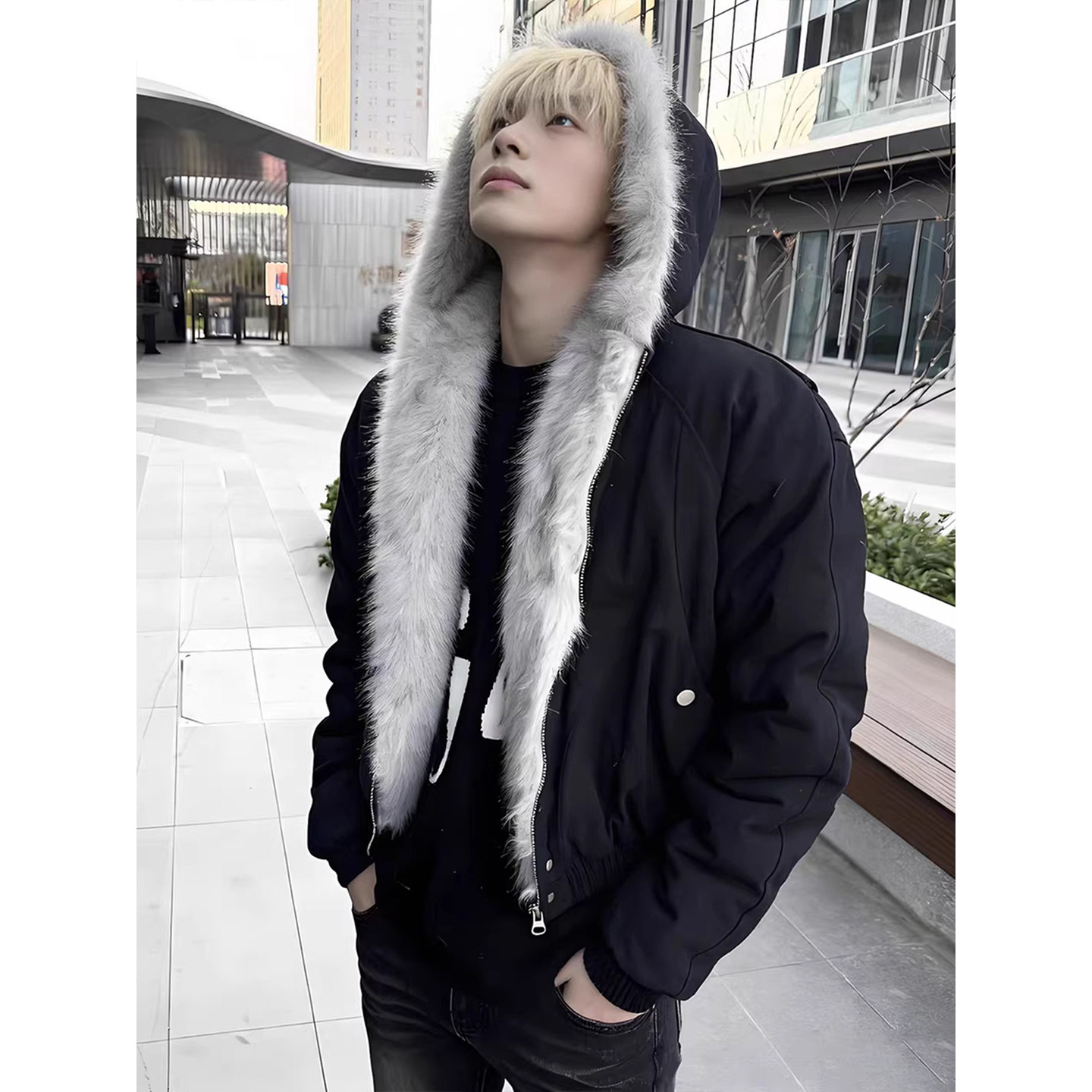 美式高街黑色座山雕羽绒棉服男款冬季高级感痞帅加厚连帽棉衣外套