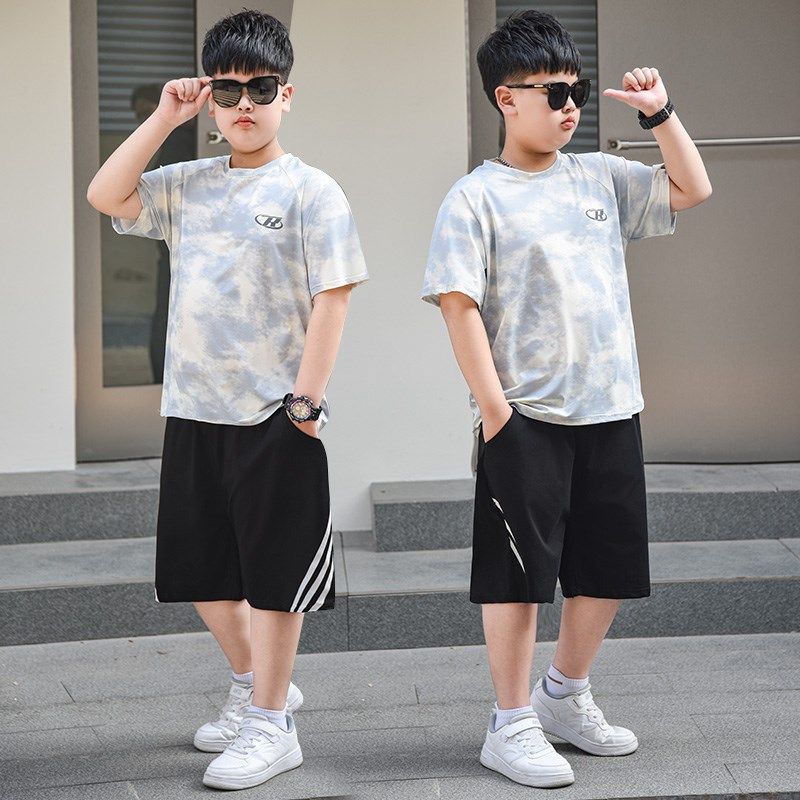 胖男童速干衣运动套装加肥加大码夏季薄款儿童冰丝短袖篮球训练服
