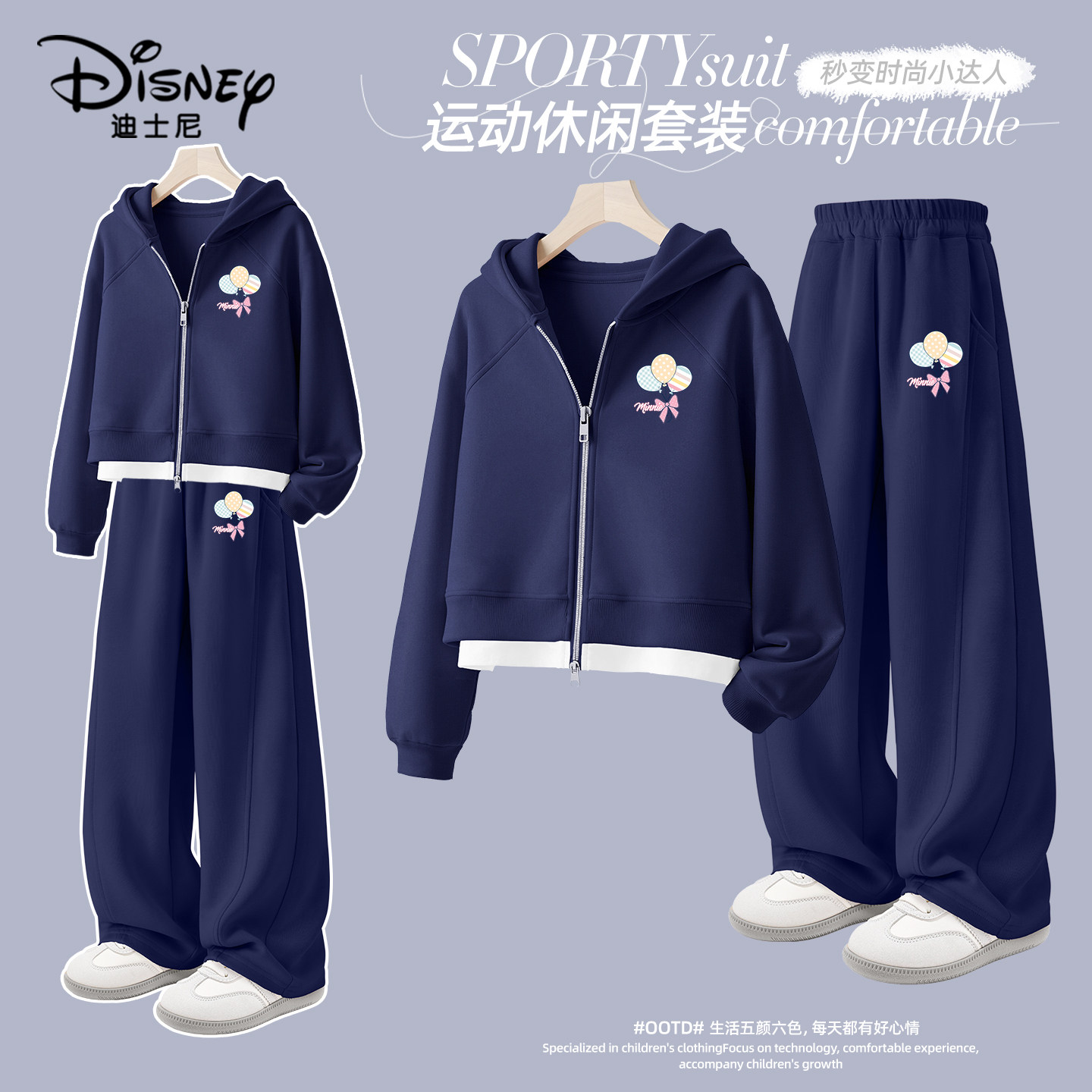 迪士尼女童套装春秋款2026新款洋气小女孩春装外套薄款儿童休闲裤