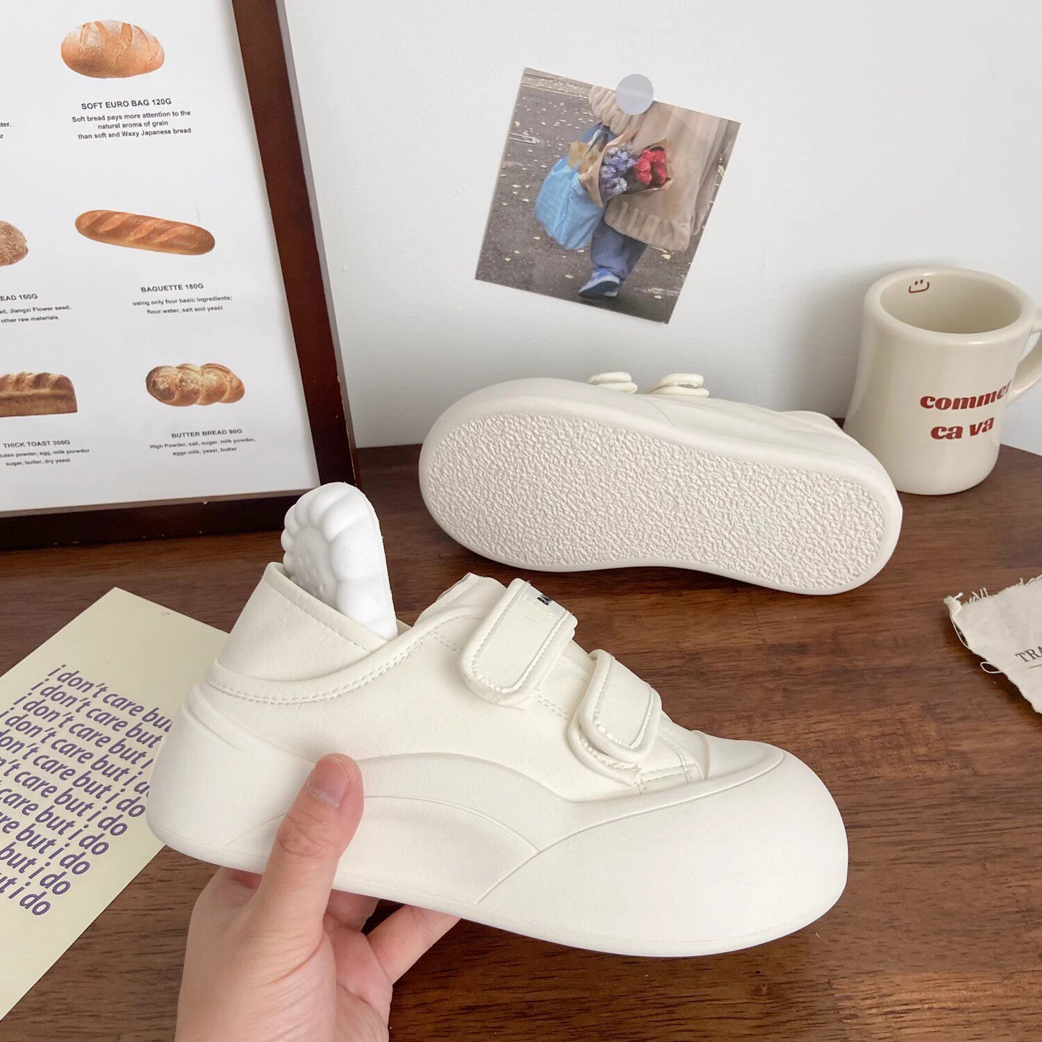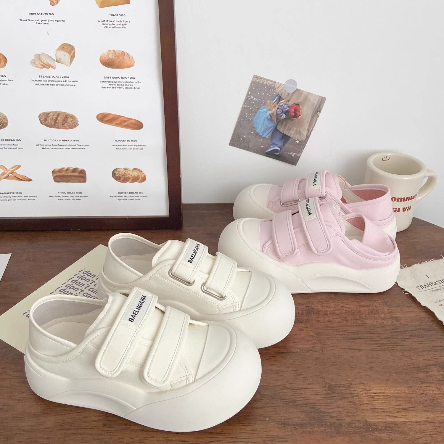 奶白两穿小白鞋女丑萌春夏新款chic厚底半拖面包鞋大头一脚蹬板鞋
