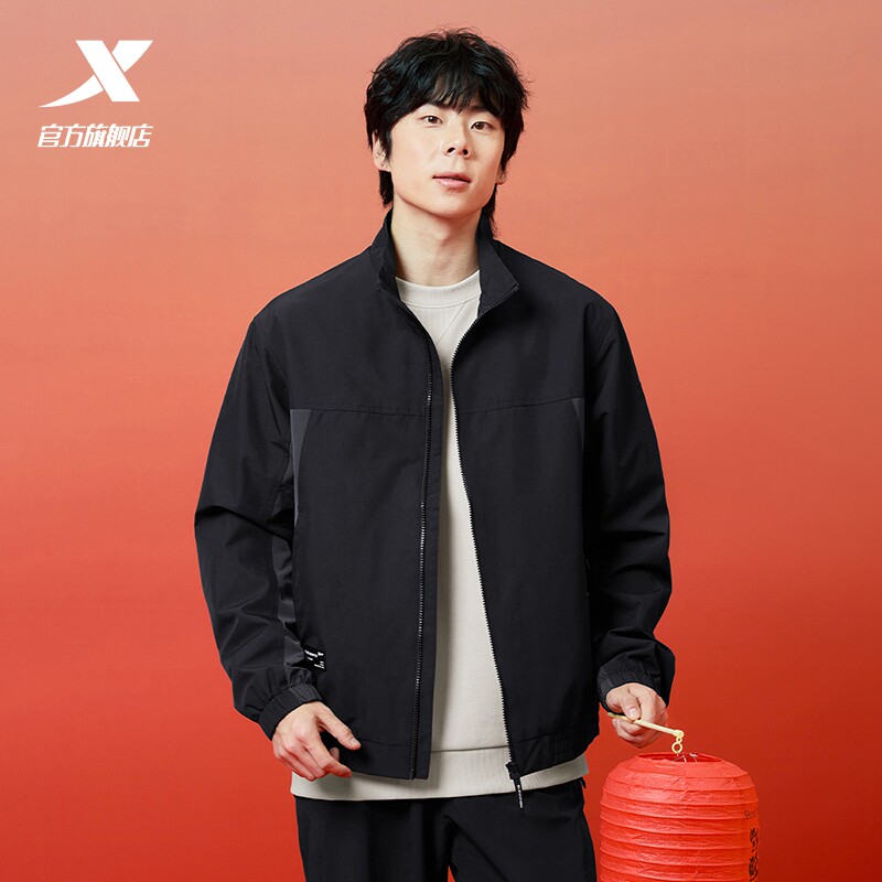 官方正品男装新款特步外套休闲运动立领梭织夹克风衣975129120273