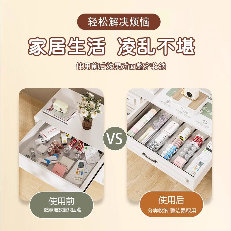桌面收纳盒长条窄长型长方形亚克力透明杂物袜子小物件抽屉分隔盒