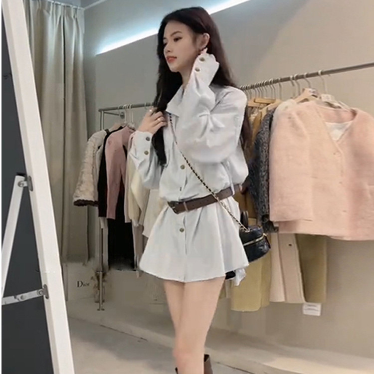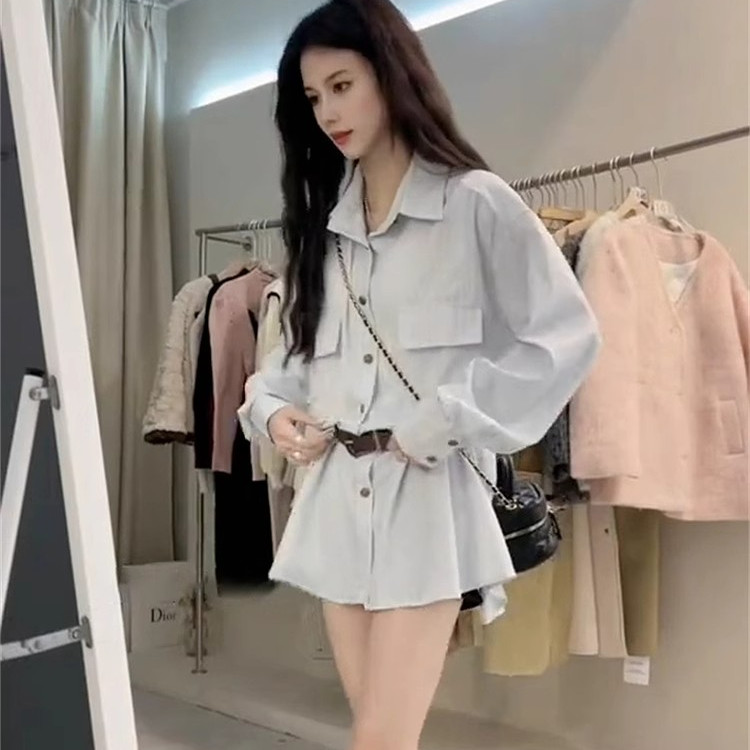 法式小众设计长袖衬衫连衣裙子女装2025春夏季新款小个子短裙夏季