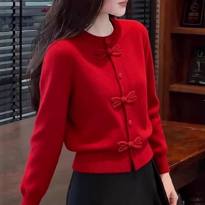 冬季穿搭红色圣诞穿搭毛衣女款2026新款小个子绝美巨好看的小上衣