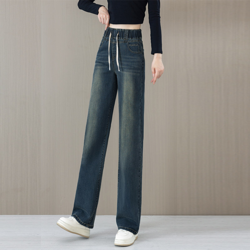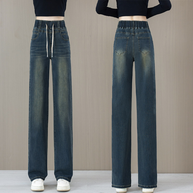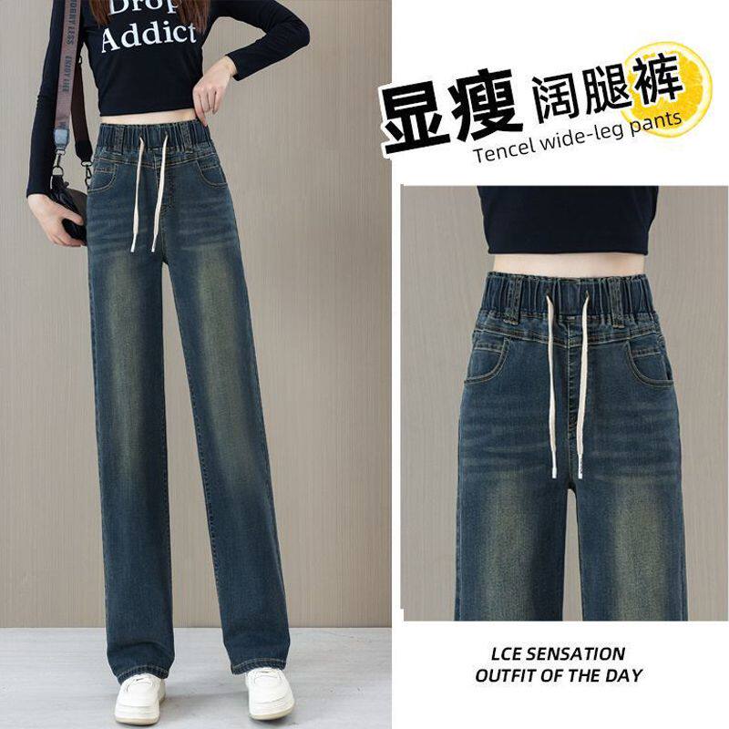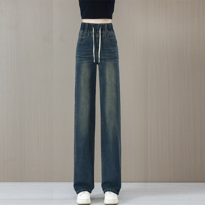 松紧腰直筒牛仔裤女款爆款2026春秋夏季新款高腰显瘦薄款阔腿裤子